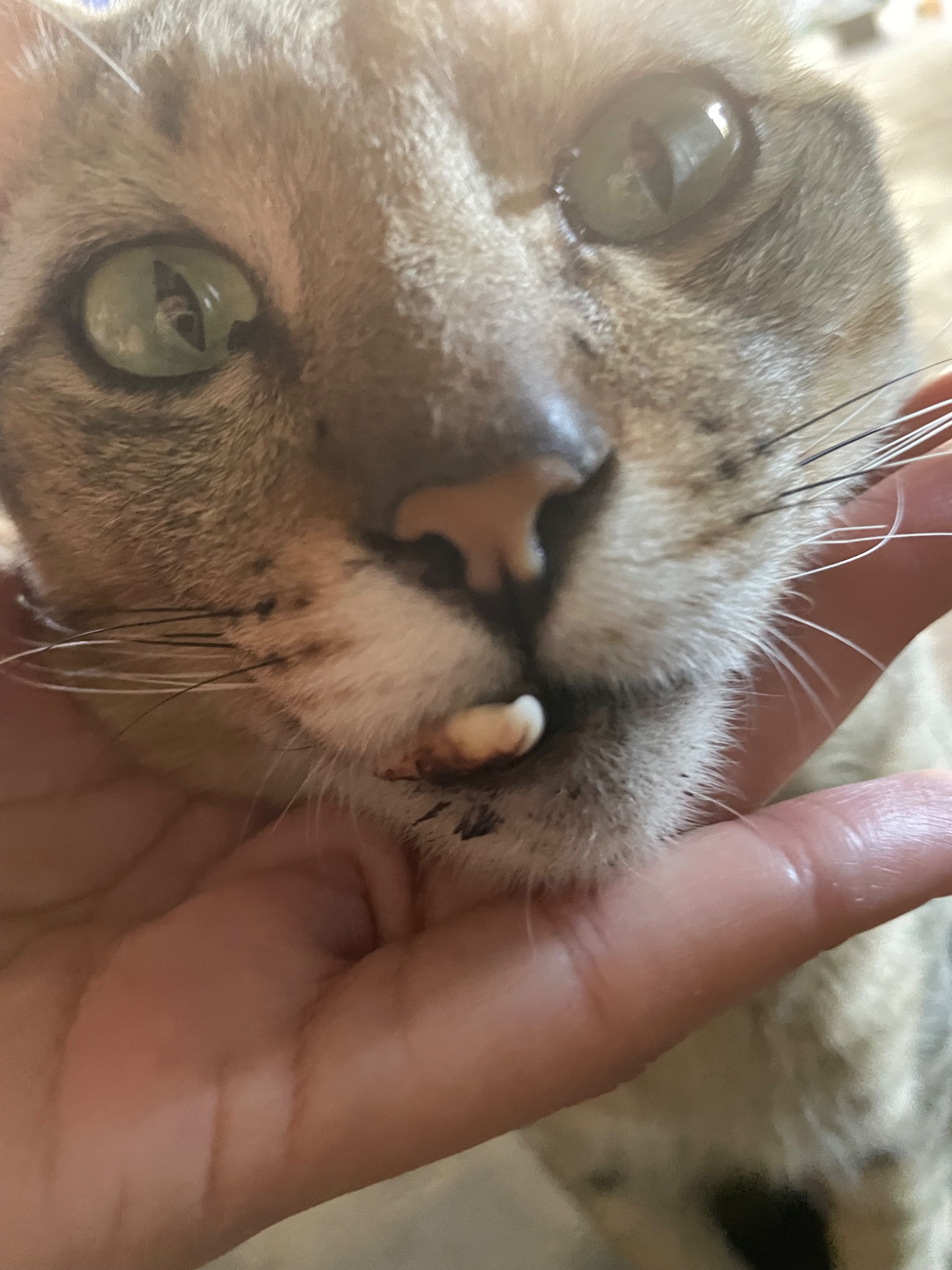 ฟันล่างแมวหลุดแบบนี้เลยค่ะ เลือดออกเยอะมาก อยากทราบว่าจะเป็นอันตรายอะไรไหมคะ วันที่หลุดตอนนั้นก็มีอาการบวมแล้วซึมไปเลย ช่วยด้วยนะคะ