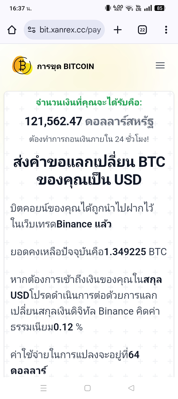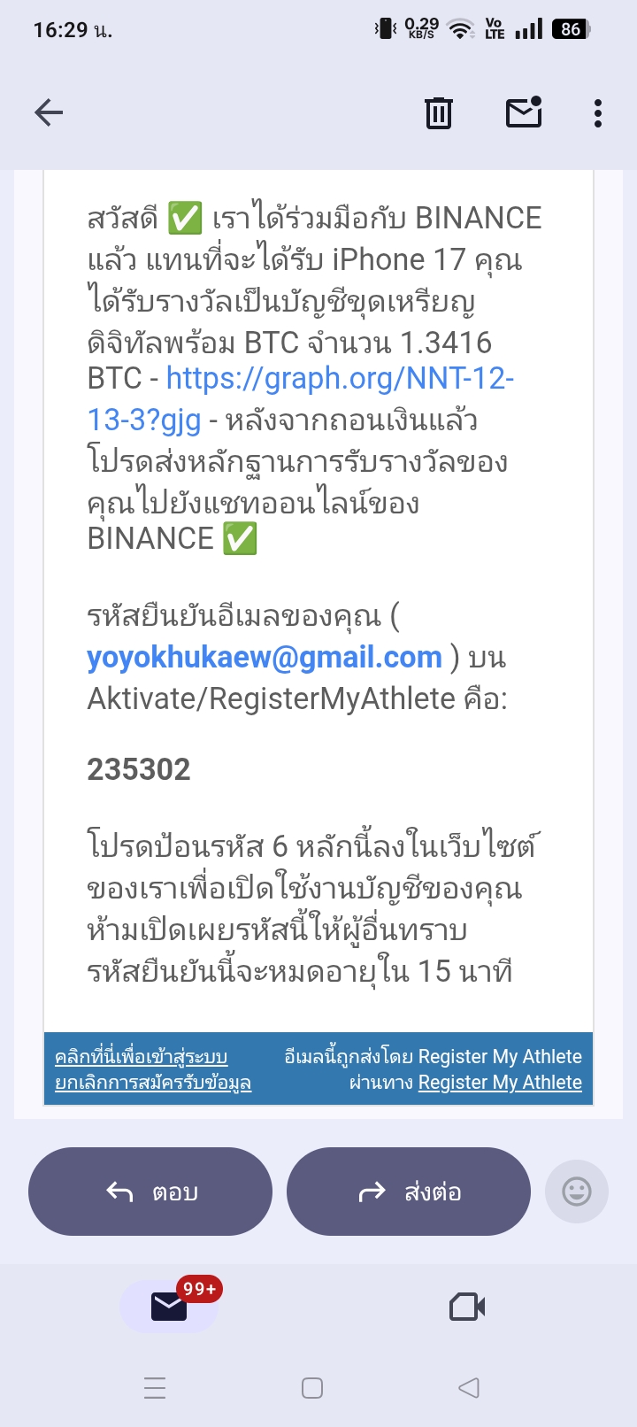 ได้รับemailว่าได้ทำการขุดบิทคอยท์ทิ้งไว้1ปีให้เข้าไปทำการแลกเปลี่ยนและรับเงินไม่รู้ว่าจริงเท็จแค่ไหนครับ