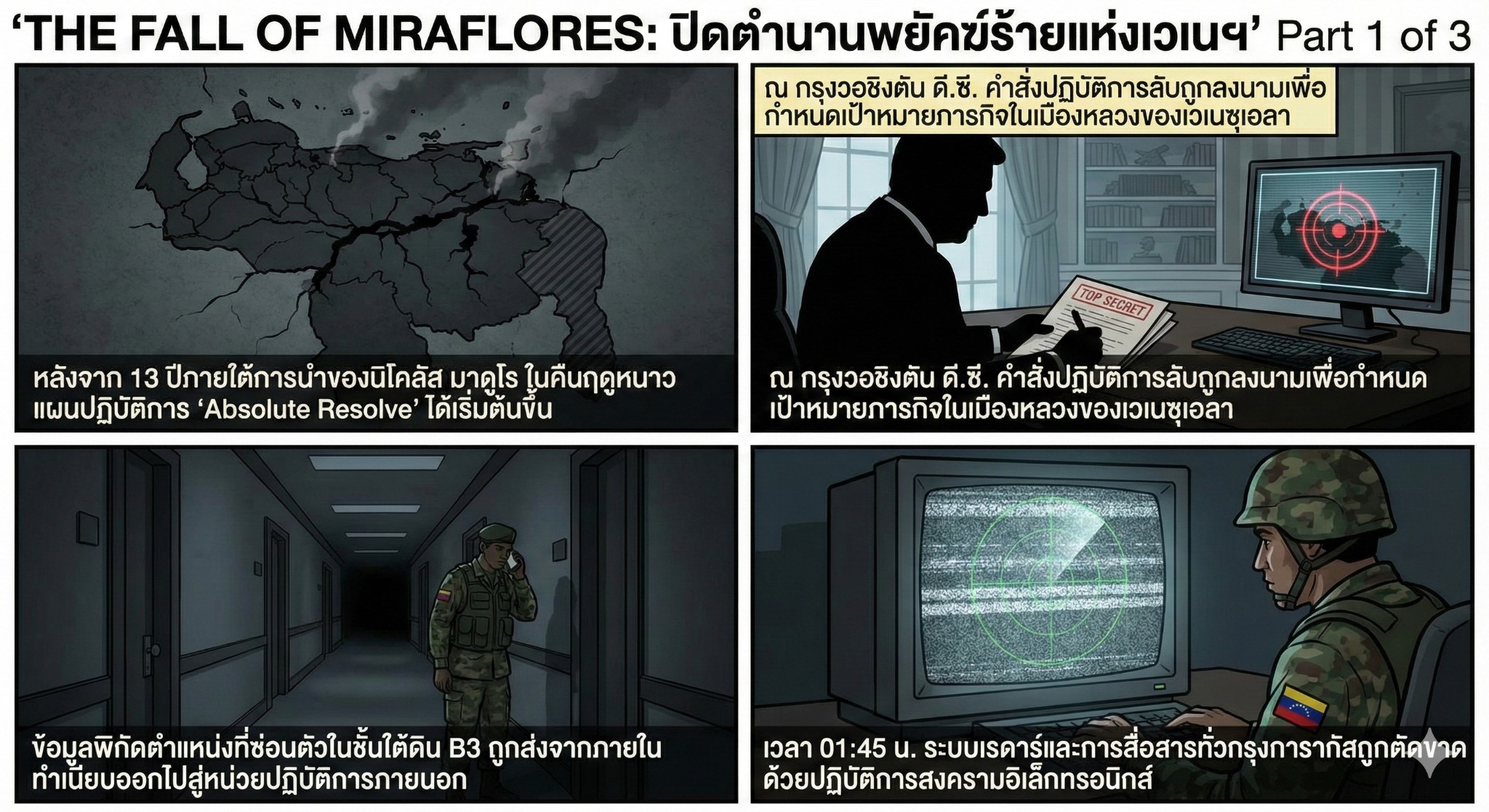 ในช่วงก่อนรุ่งสางวันเสาร์ที่ 3 มกราคม 2568 เมื่อเวลาประมาณ 2:00 น. ตามเวลาท้องถิ่น ชาวกรุงการากัส เมืองหลวงของเวเนซุเอลา ถูกปลุกด้วยเสียงที่น่าสะพรึงกลัว เสียงระเบิดและเสียงใบพัดเฮลิคอปเตอร์ทหารดังก้องไปทั่วเมือง นี่คือจุดเริ่มต้นของปฏิบัติการ "แอบโซลูท รีโซลฟ์" (Absolute Resolve) ภารกิจทางทหารครั้งยิ่งใหญ่ที่สหรัฐอเมริกาวางแผนมาอย่างลับๆ เป็นเวลาหลายเดือน
