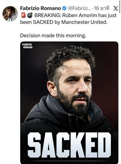 🚨 ด่วน! แมนเชสเตอร์ ยูไนเต็ด ตัดสินใจปลด รูเบน อโมริม พ้นตำแหน่ง