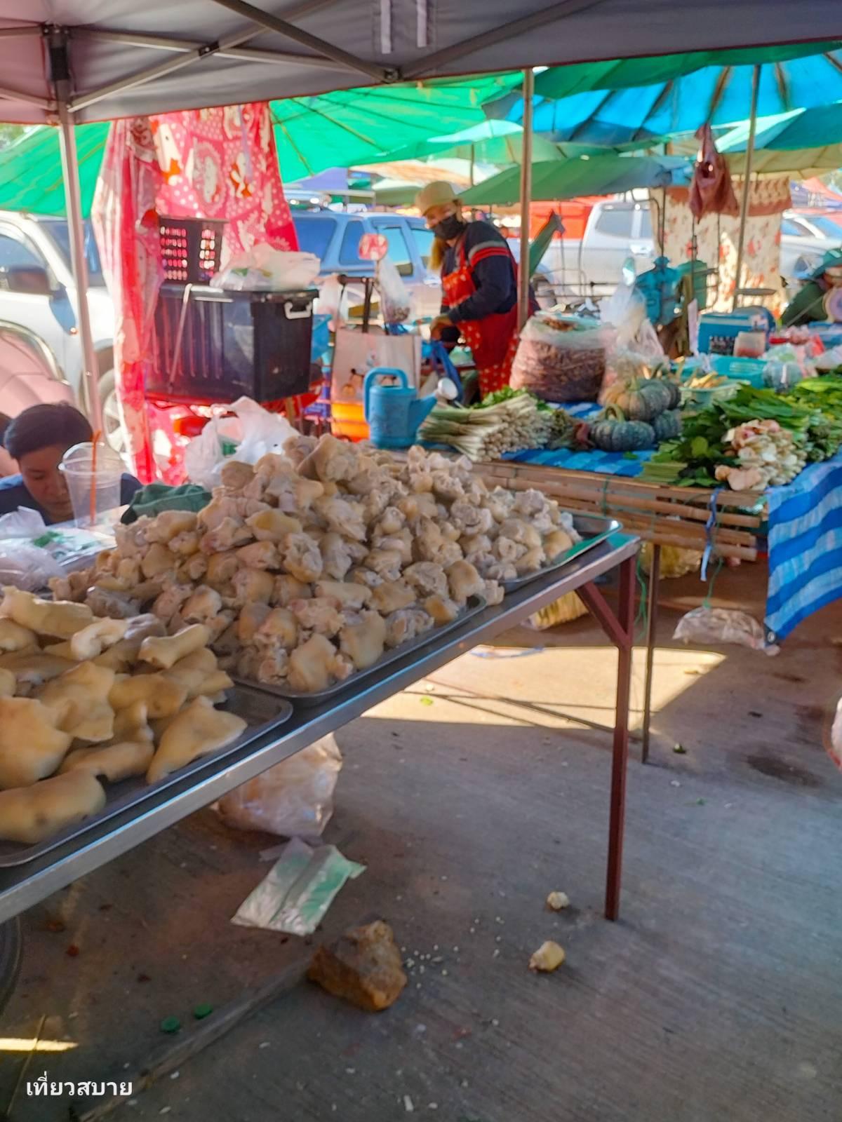 ปกติตลาดนี้จะไม่ค่อยมีปลาสดๆจากเขื่อนมาขายบ่อยนัก แต่วันนี้โชคดี มีแผงปลาที่ชาวบ้านจับมาขายเอง ปลาสวายตัวใหญ่ๆ สดๆ จากเขื่อนกระเสียว ราคากิโลละ 30 บาทเท่านั้น เห็นแล้วอดใจไม่ไหวต้องซื้อกลับบ้านเลยค่ะ