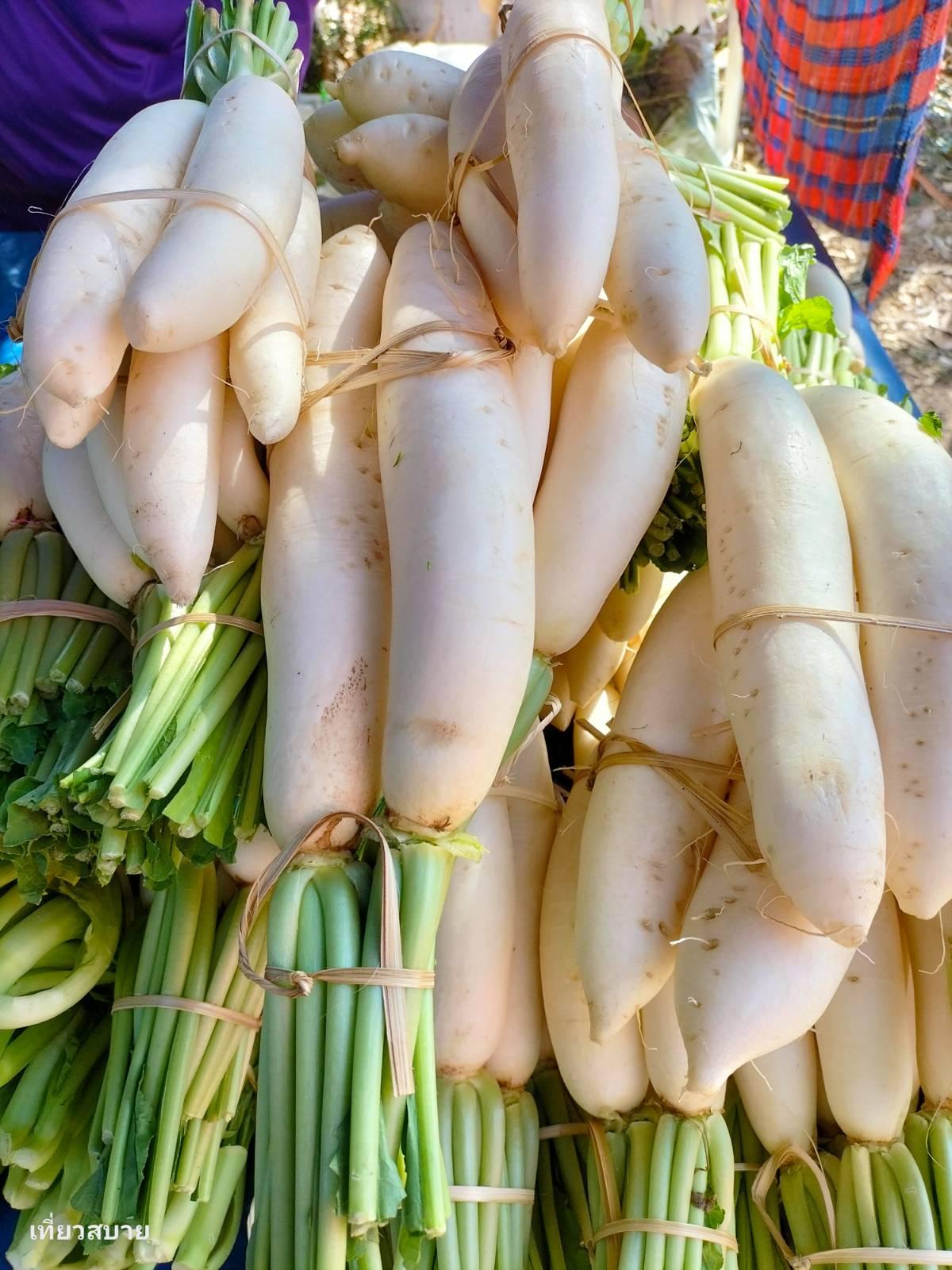 ผักกาดเขียวปลี และหัวไชเท้า: 3 มัดใหญ่ๆ 25 บาท