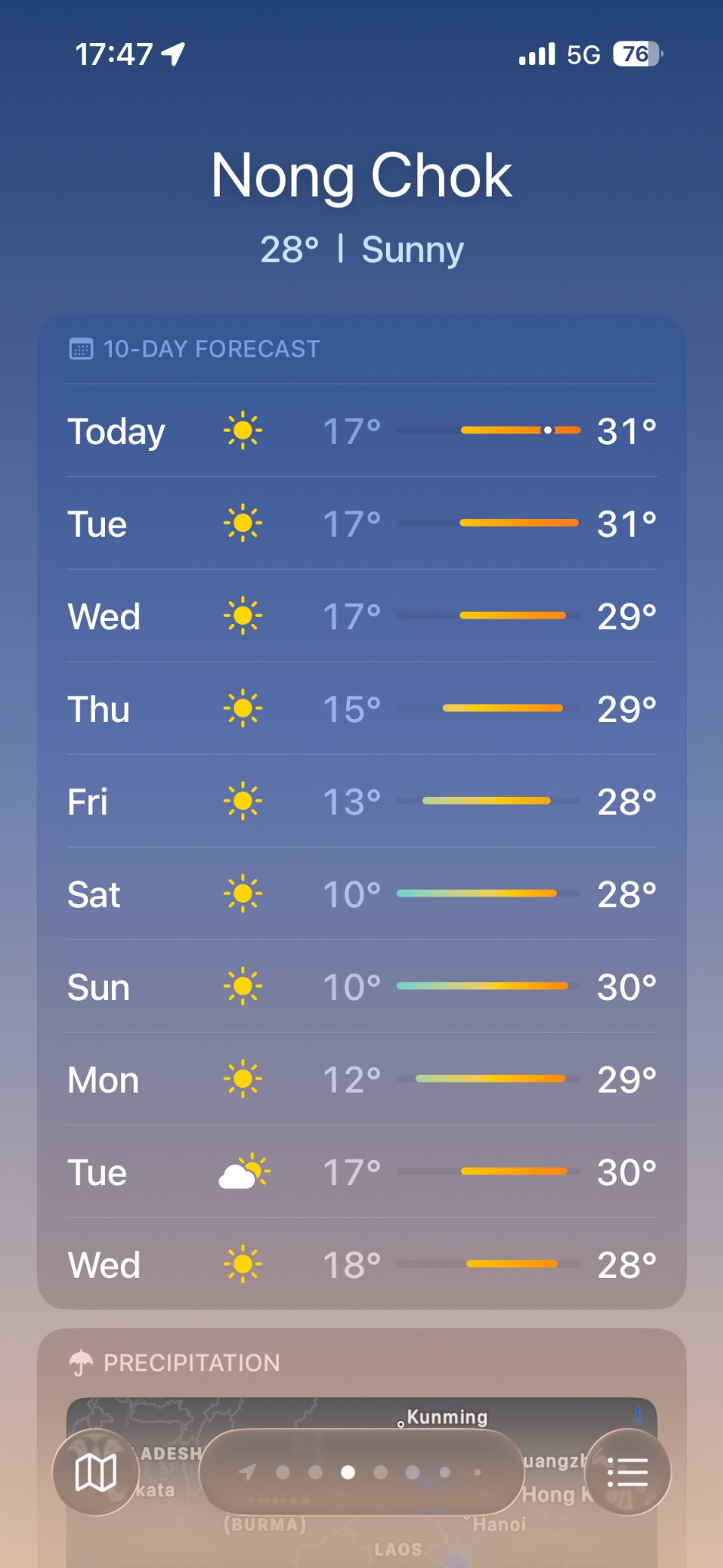 แอปพยากรณ์ใน iphone ให้ความหวัง กรุงเทพ (หนองจอก) ต่ำสุด 10 องศา!!