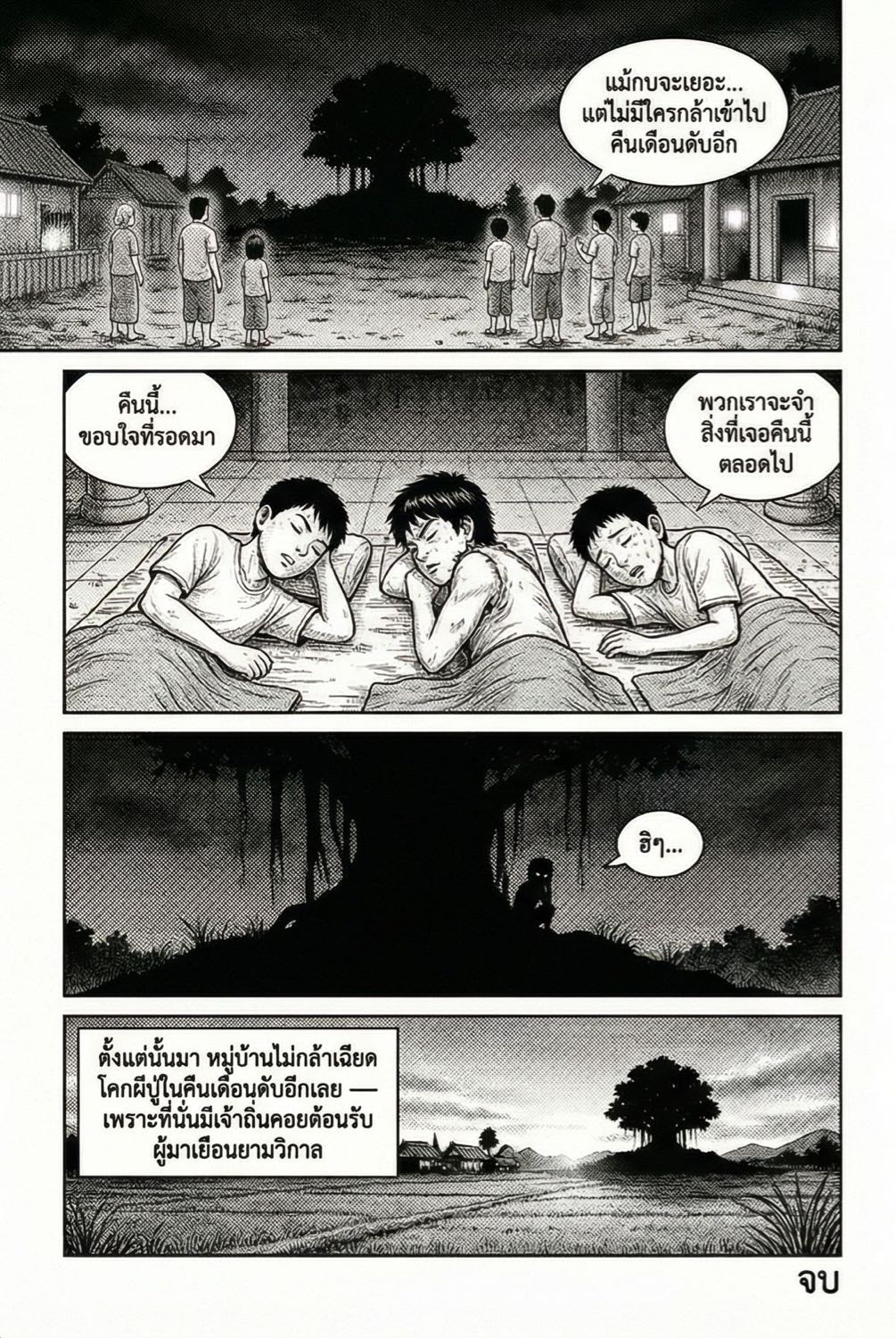 "กูว่า... เรากลับกันเถอะว่ะ" จ่อยพูดเสียงสั่นเครือ "กูรู้สึกไม่ดีเลย แถวนี้มันเงียบเกินไป"