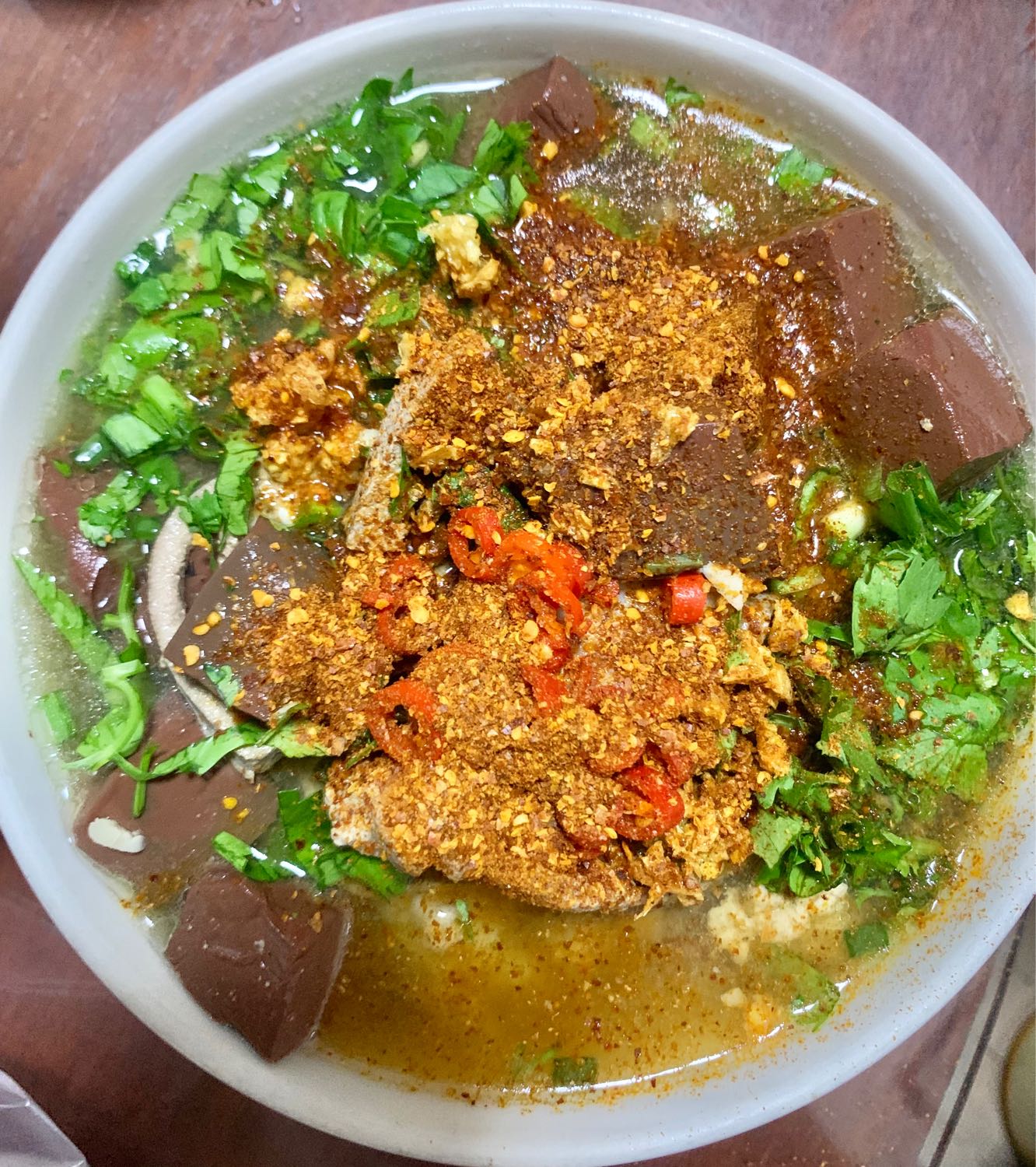 ผักชีโรย พริกแดงดองน้ำส้ม กระเทียมเจียว พริกป่น พริกไทยป่น ใส่น้ำปลาน้ำตาลตามชอบ ปรุงรสตามชอบ