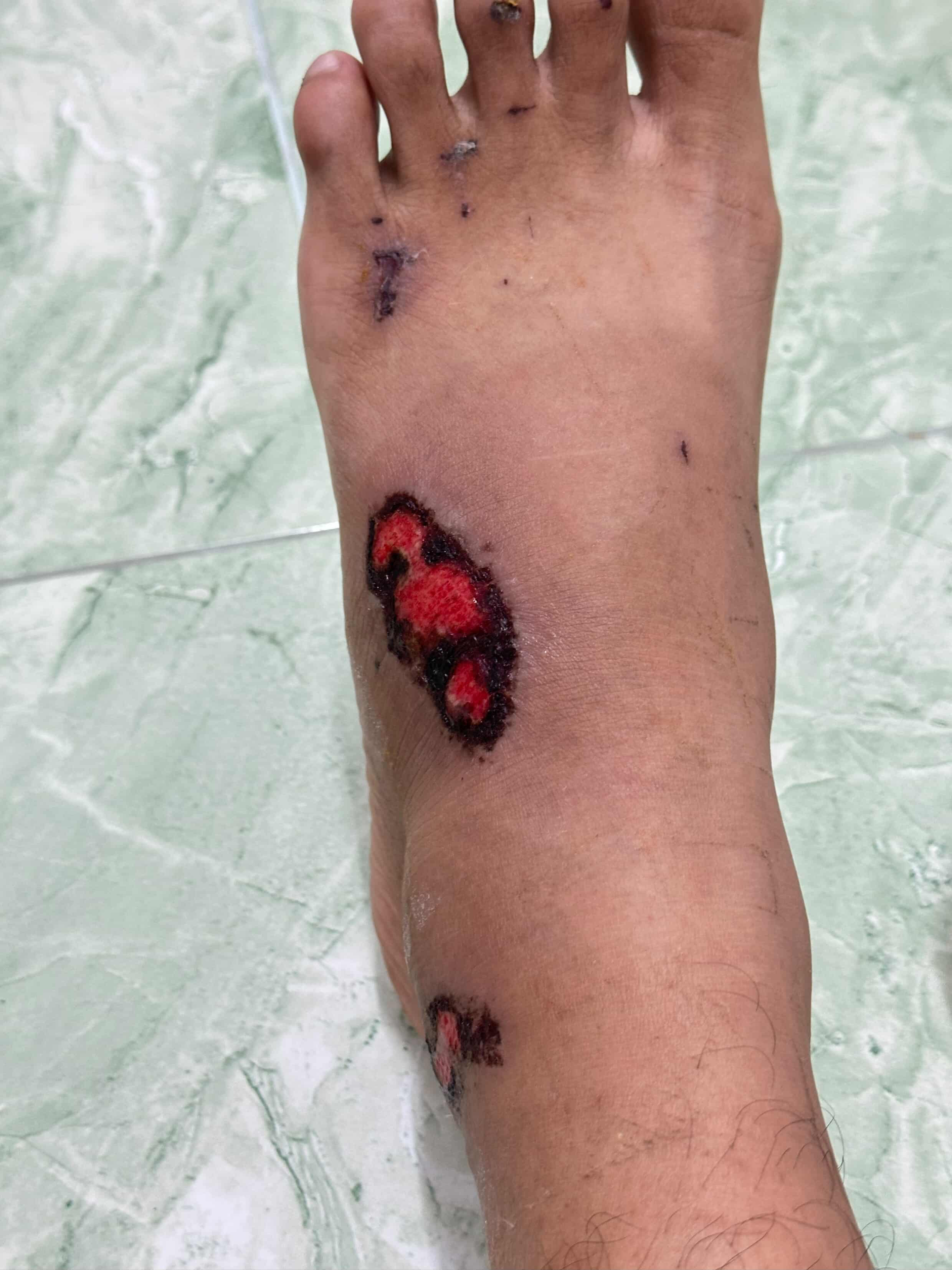 ตื่นขึ้นมาก็มแปผลนี้แล้วค่ะตอนอาบน้ำแสบมากเลยมองที่เท้าก็เห็นมีอยู่แล้ว ตอนนี้ไม่มีอาการอะไรนะคะแค่ตอนเอามือไปจับเจ็บๆแสบๆนิดหน่อยตรงแผลคค่ะ อยากทราบว่าคือตัวอะไรหรอคะจะได้ระวังๆไว้ค่ะหาแล้วในที่นอนไม