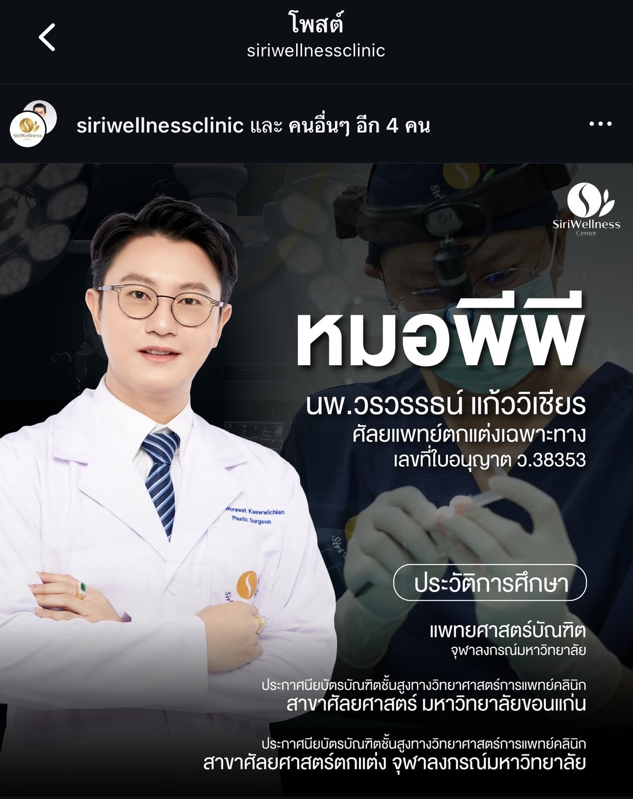 ศัลยแพทย์ตกแต่งเฉพาะทาง เลข ว.38353