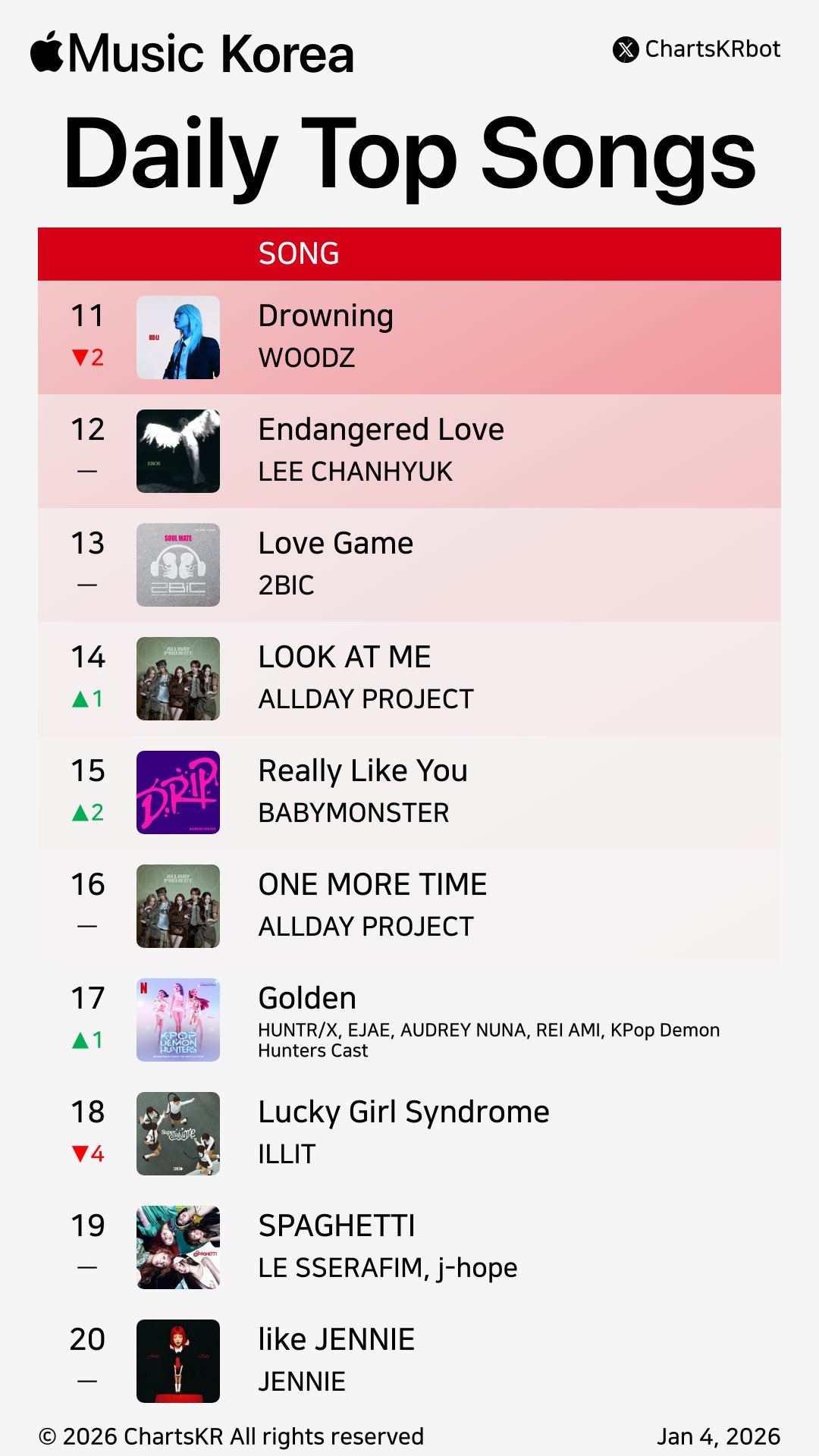 เพลง Really Like You ทะยานขึ้นสู่อันดับ 15 บน Apple Music South Korea Chart หลังจากปล่อยเพลงนี้มานานกว่า 1 ปีแล้ว ขณะเดียวกัน