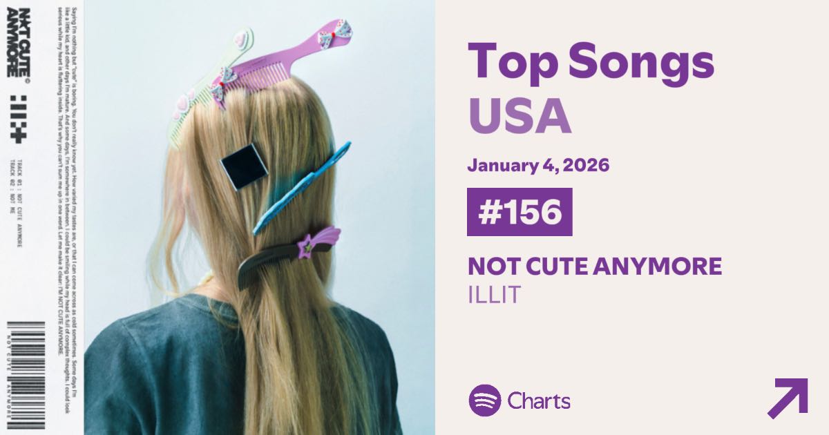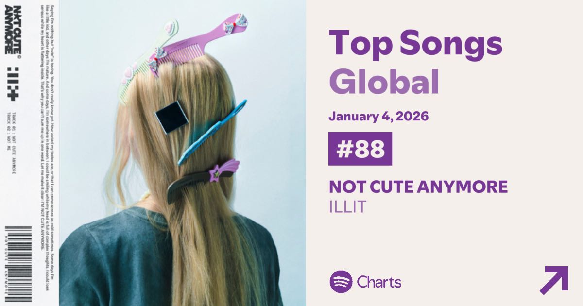 ILLIT พา 'NOT CUTE ANYMORE' ทะลุ Top 100 Spotify Global #88 ขึ้นแท่นวง K-POP อันดับสูงที่สุด + New Peak ที่ USA #156
