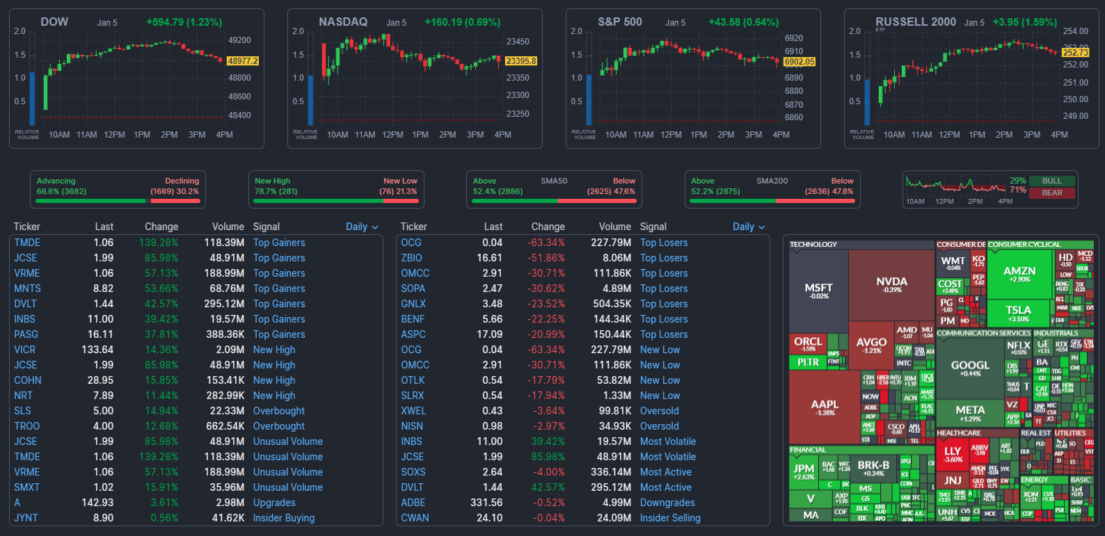 ตลาดหุ้นสหรัฐคึกคักหลังปีใหม่ ดาวโจนส์ทำสถิติสูงสุดเป็นประวัติการณ์ หุ้นพลังงานปิดบวก หลังสหรัฐโจมตีเวเนซุเอลา