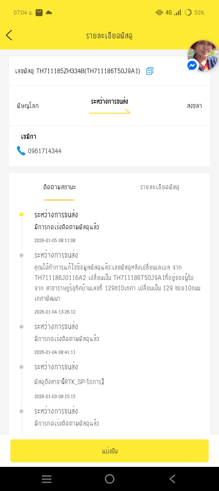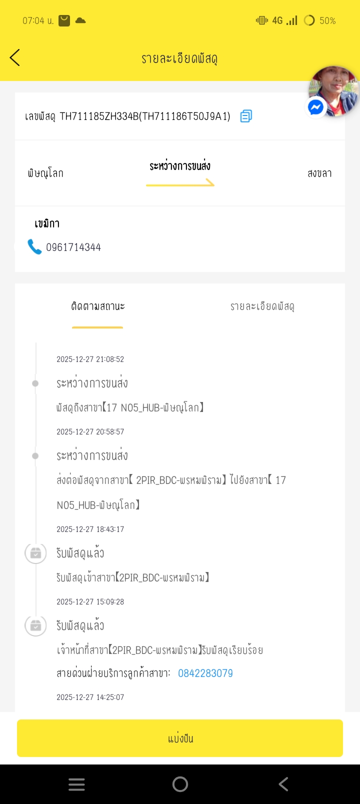 ต้นทางส่งของให้ตั้งแต่วันที่ 11/12/68 จนนี้วันที่ 14/12/68 ละ สถานะไม่อัพเดทเลย ผ่านไป 24ชม. ขึ้นค้างว่าจากสุราษฯมาหาดใหญ่ มันใช้เวลาเป็นวันเลยหรอครับ ของจำเป็นต้องใช้จนตอนนี้มีปัญหาละ เพราะไม่มีอุปกร