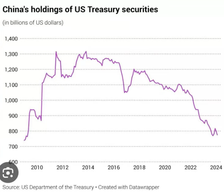 จีนขายพันธบัตรอเมริกันออกเรื่อยๆ (ปีละ 1 แสนล้านดอลลาร์ - 3 ล้านล้านบาท) ทั้งๆที่ดอกเบี้ยอเมริกันก็สูงกว่า เพราะอะไร