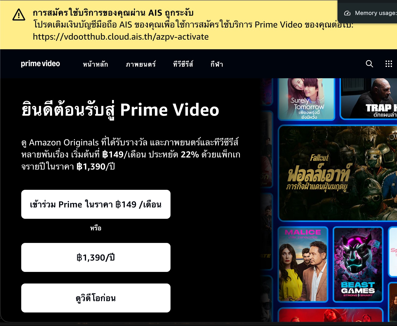 ทำไมหลัง ๆ มานี้เจ้าหน้าที่ติดต่อยากจังคะ? หรือเพราะเหลือแค่ 2 เจ้าถึงไม่ค่อยแคร์ลูกค้าแล้ว? เรื่องมีอยู่ว่าสมัคร package ดูหนังของ ais เป็น package PLAY PREMIUM PLUS สมัครผ่าน myAIS หักเงินอัตโนมัติ แต่ตัวแอป prime แจ้งว่าถูกระงับทั้งที่เงินก็ตัดไปแล้ว แอปอื่นดูได้ปกติ แต่ prime เป็นตามรูปแรกที่แนบไป