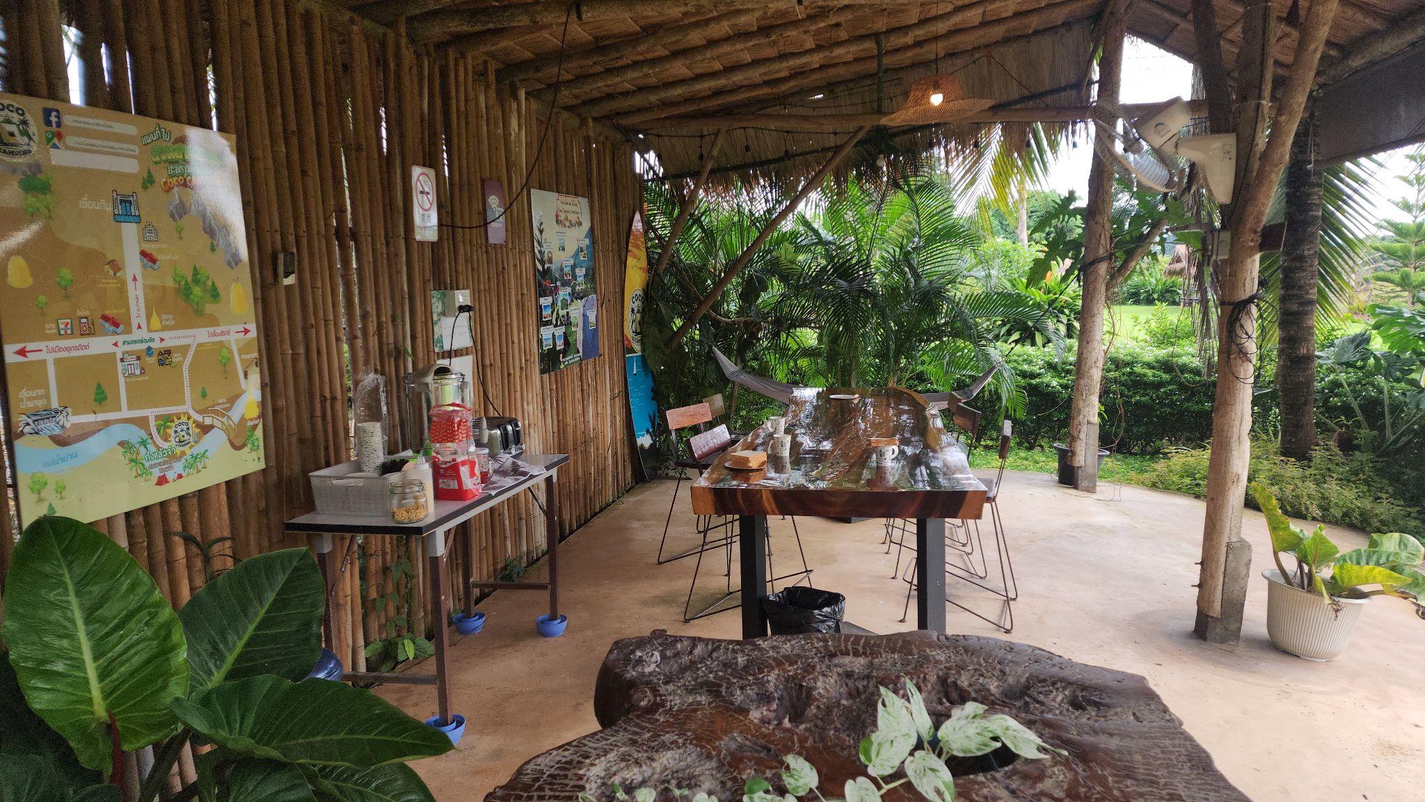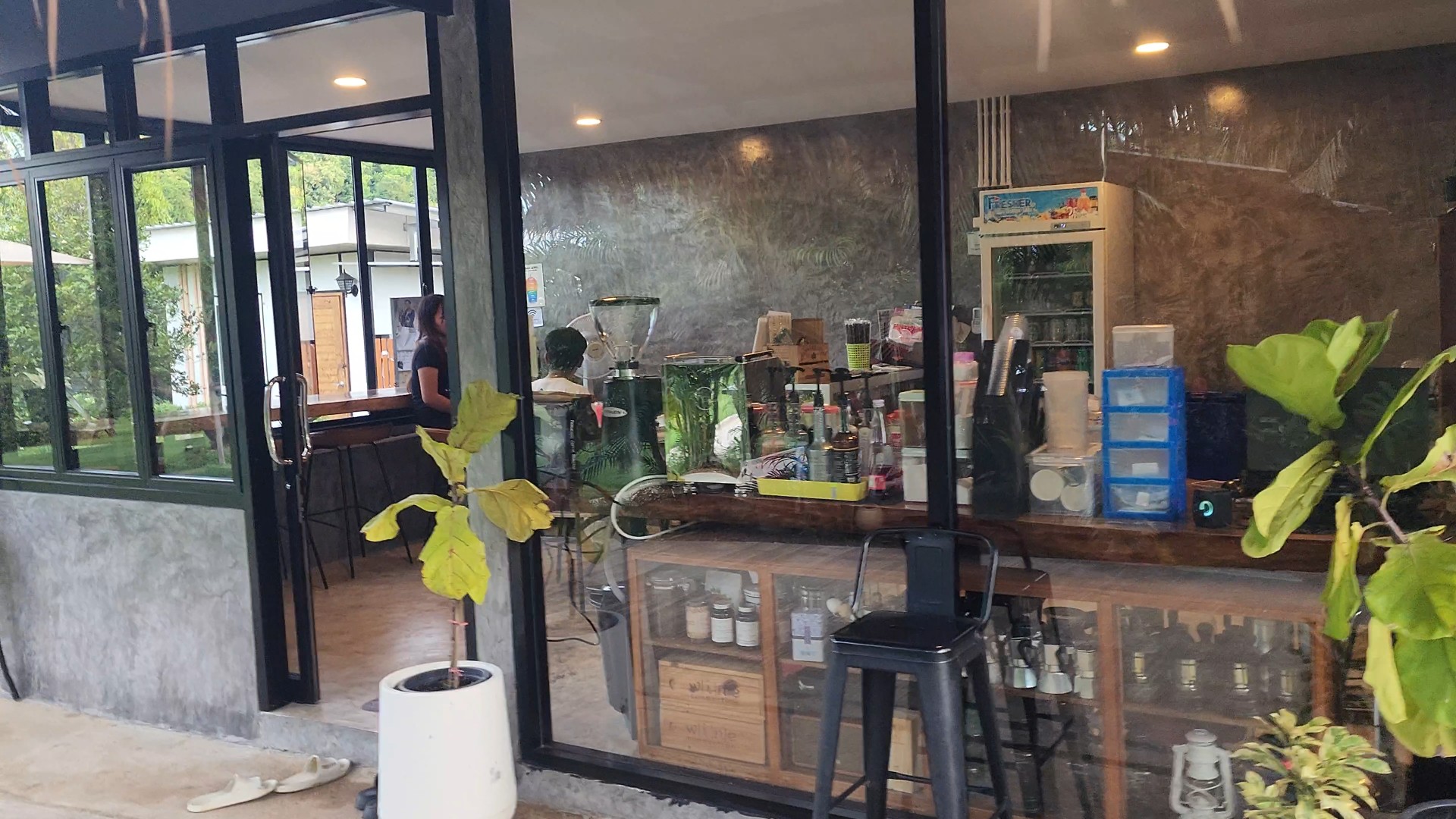 ใกล้ๆที่จอดรถเป็นคาเฟ่เล็กๆและติดต่อห้องพัก