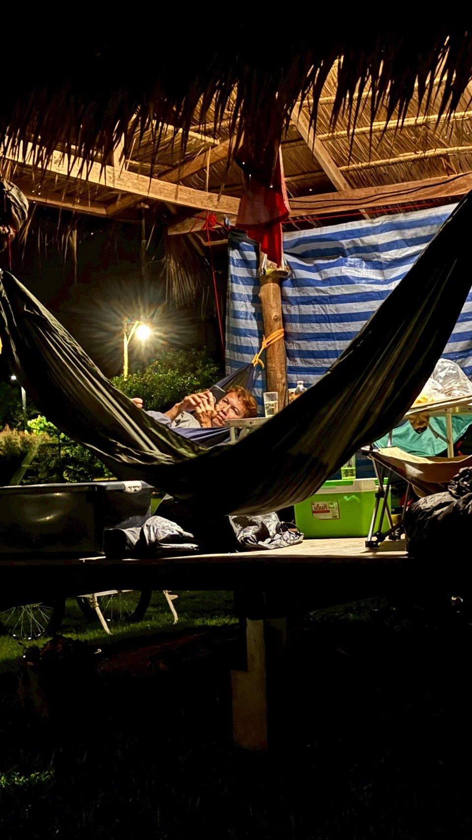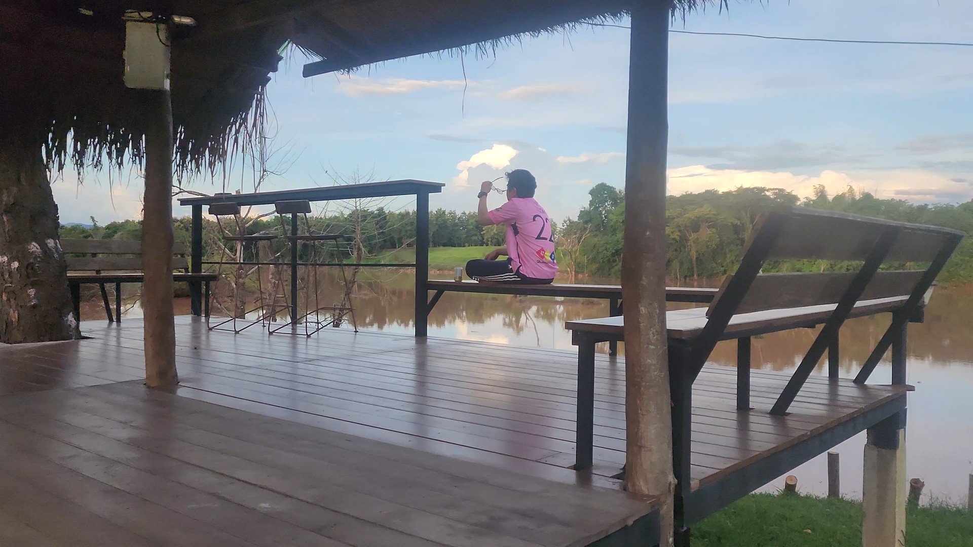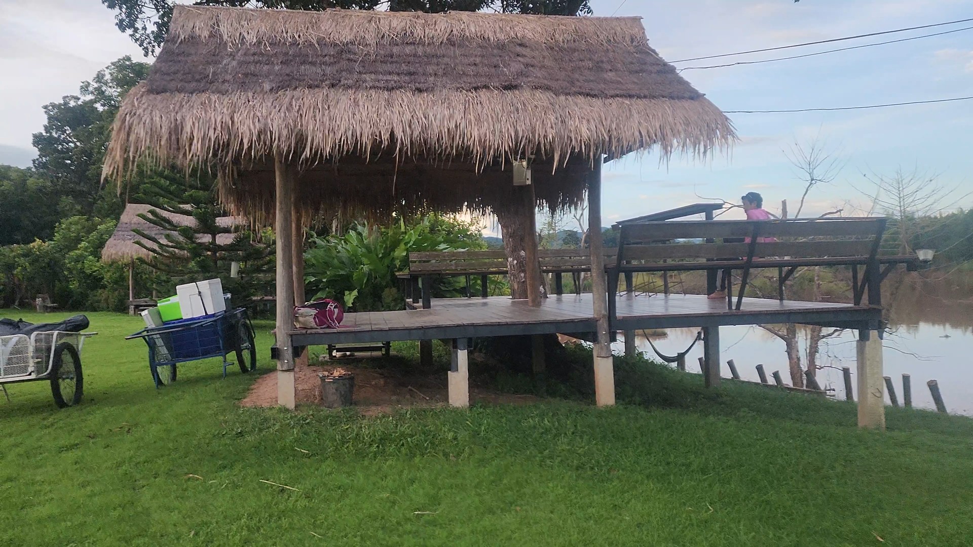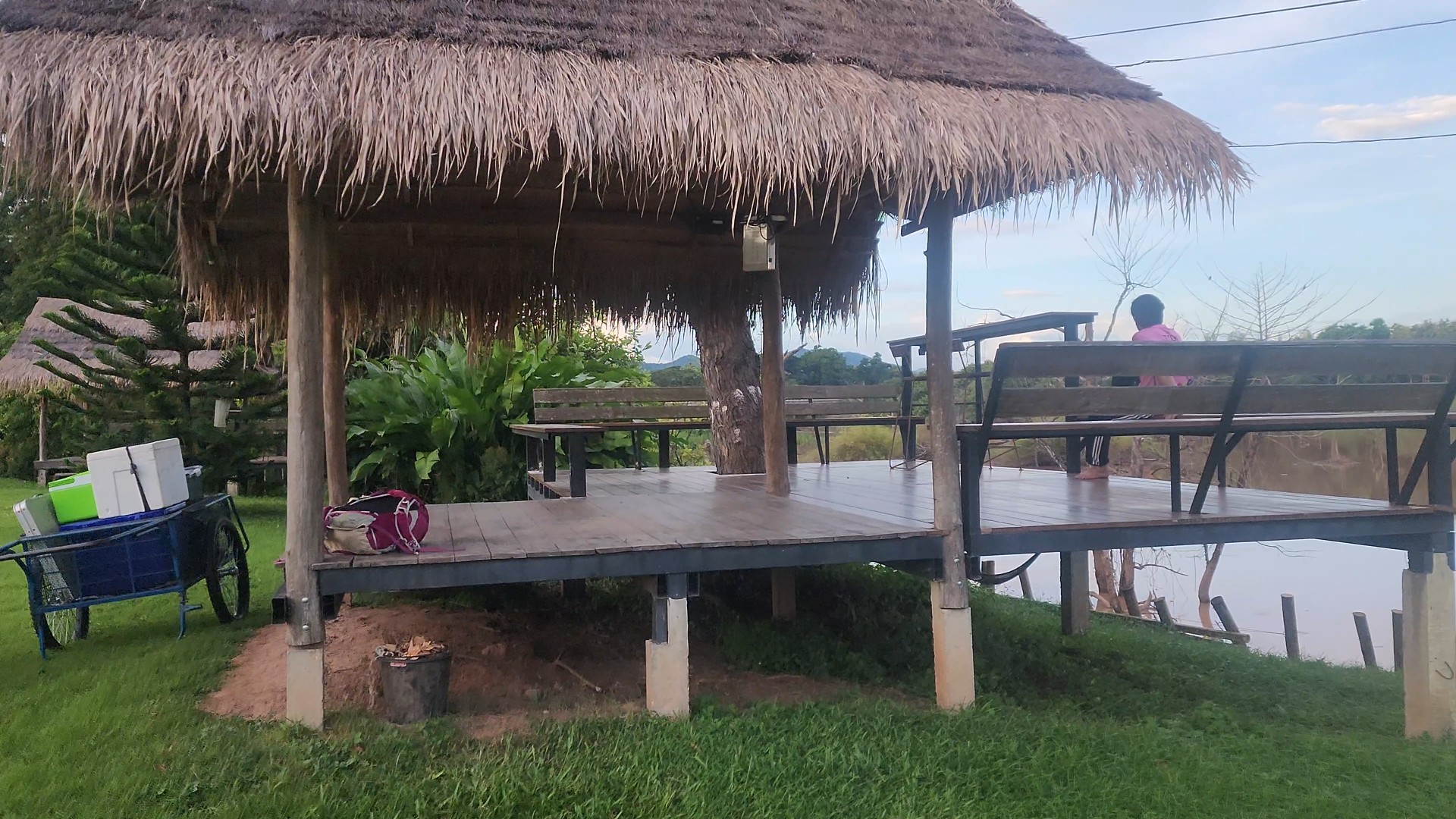 แต่พวกผมเลือกนอนบนซุ้มดีกว่าไม่มันใจฝน มีไฟฟ้า มีwifi ให้ด้วย