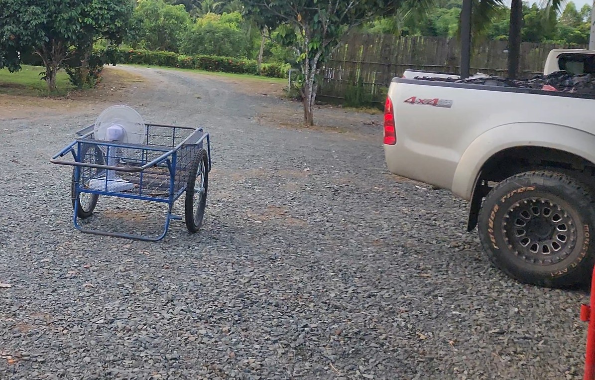 จากที่จอดรถ ทางรีสอร์ทมีบริการให้ยืมรถสำหรับเข็นของ มีพัดลมให้ยืมด้วย