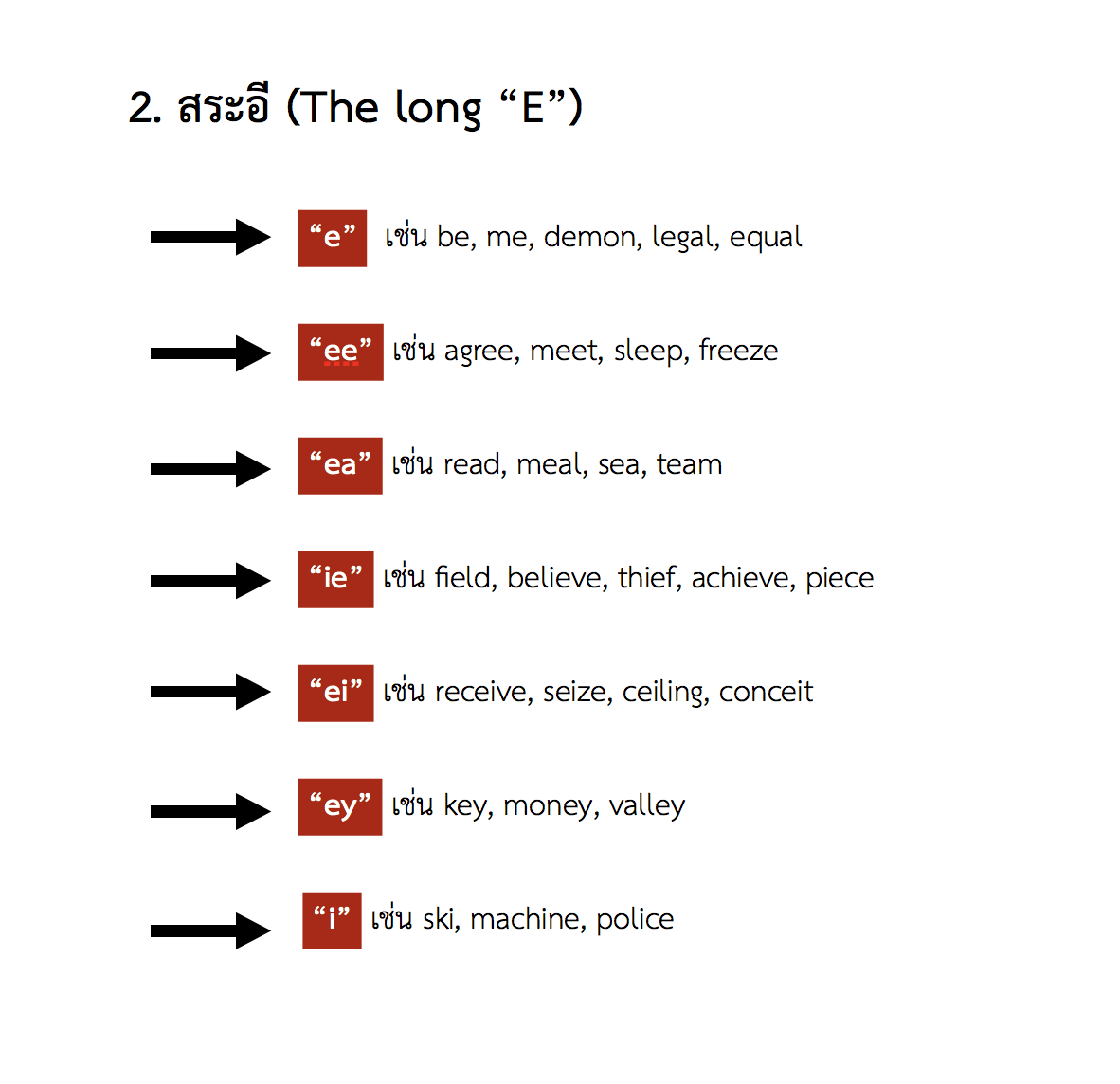 ตัวสะกดอื่น ๆ ที่อ่านเป็นเสียง long E ได้แก่...