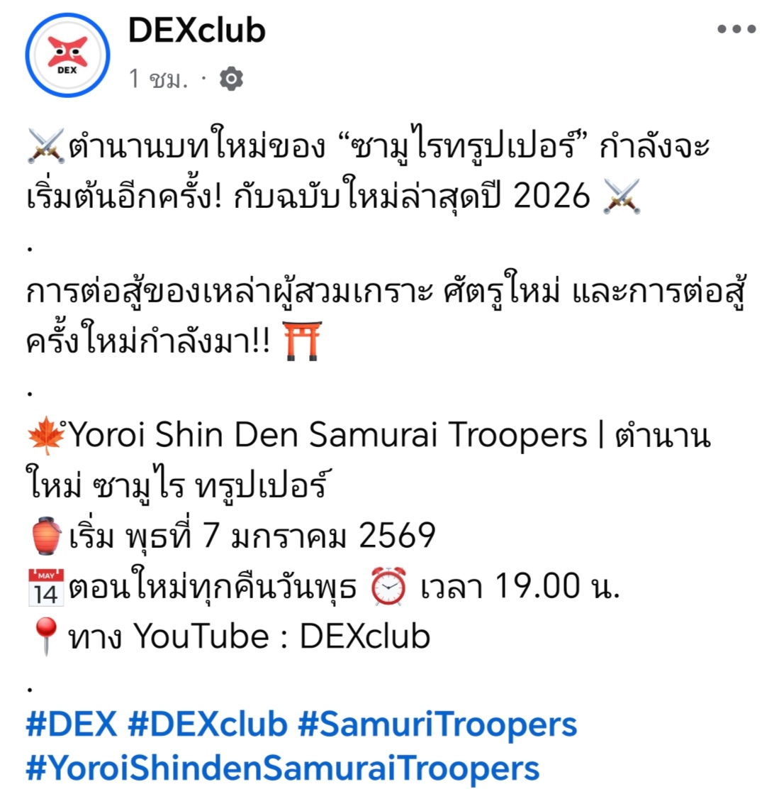 dex ประกาศลิขสิทธิ์ซามูไรทรูปเปอร์ภาคใหม่ล่าสุดอย่างเป็นทางการ ดูแบบถูกลิขสิทธิ์บน yt ช่อง dexclub ทุกวันพุธ 1 ทุ่ม ครับ
