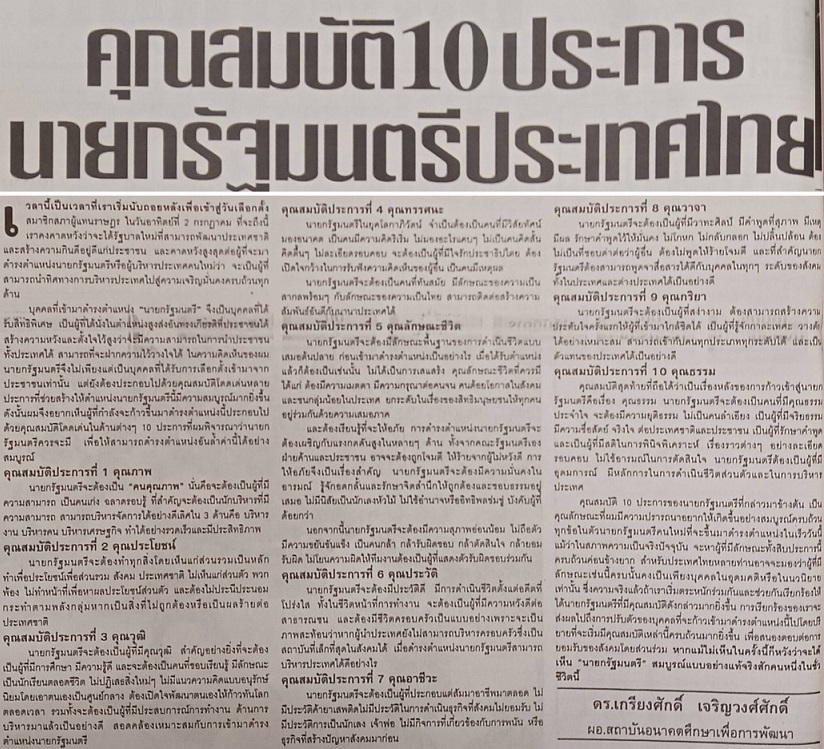 ทั้งหมดนี้...คือคุณสมบัตินายกรัฐมนตรีที่ดีโดยสมบูรณ์