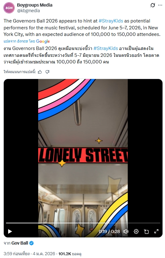🔥 Stray Kids นี่คือคำใบ้? ว่าจะได้เป็นศิลปินในงานเทศกาลดนตรี Governors Ball 2026 นครนิวยอร์กผู้เข้าร่วมชมมากกว่า100,000