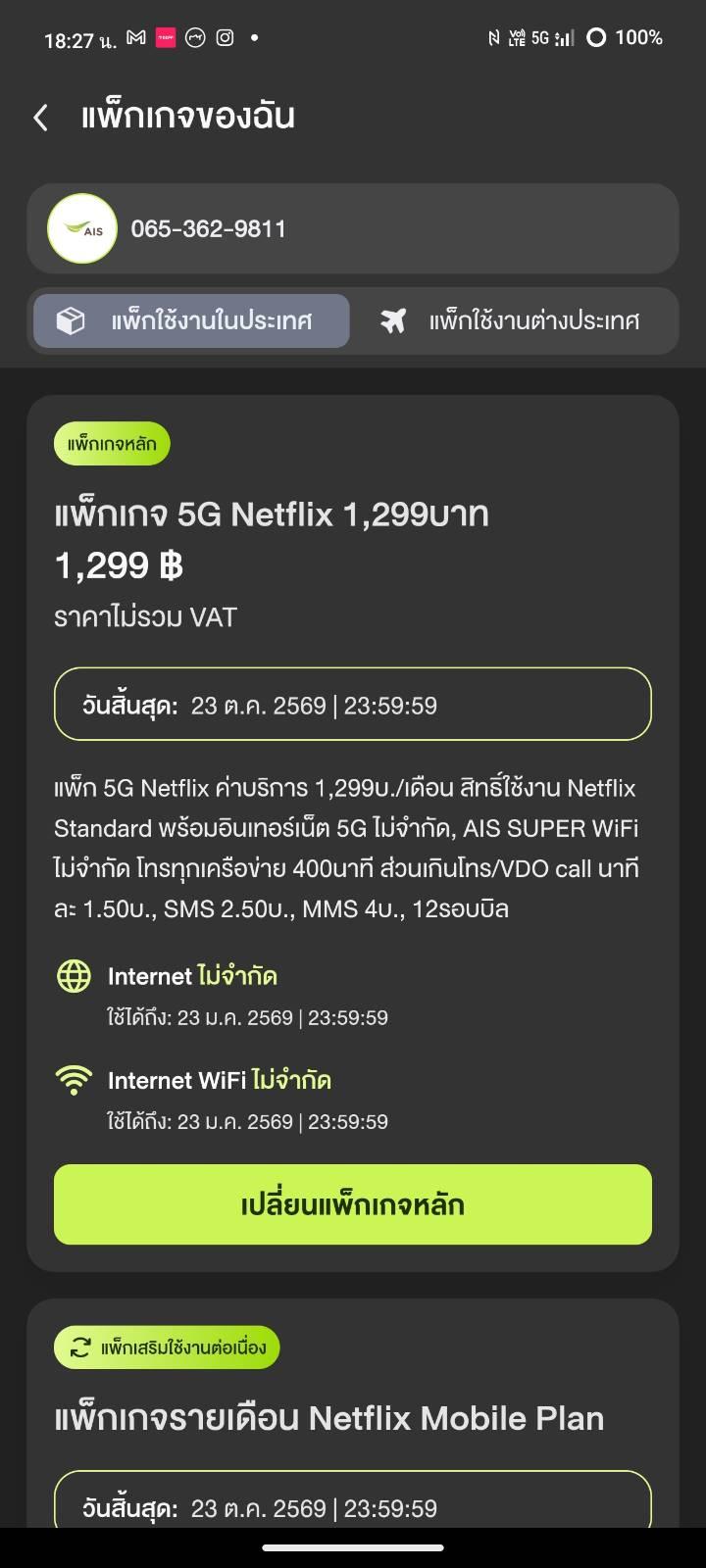 เปลี่ยนเเพ็ค รายเดือนais เอาอันที่ถูกลง
