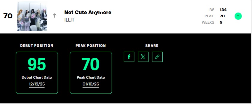ILLIT พา NOT CUTE ANYMORE ขึ้นสู่อันดับ 70 ใน Billboard Global Top 200