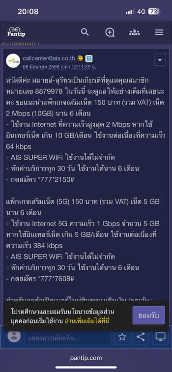 เนต AIS วันนี้ทำไมอัพเดตเวลาไม่ได้
