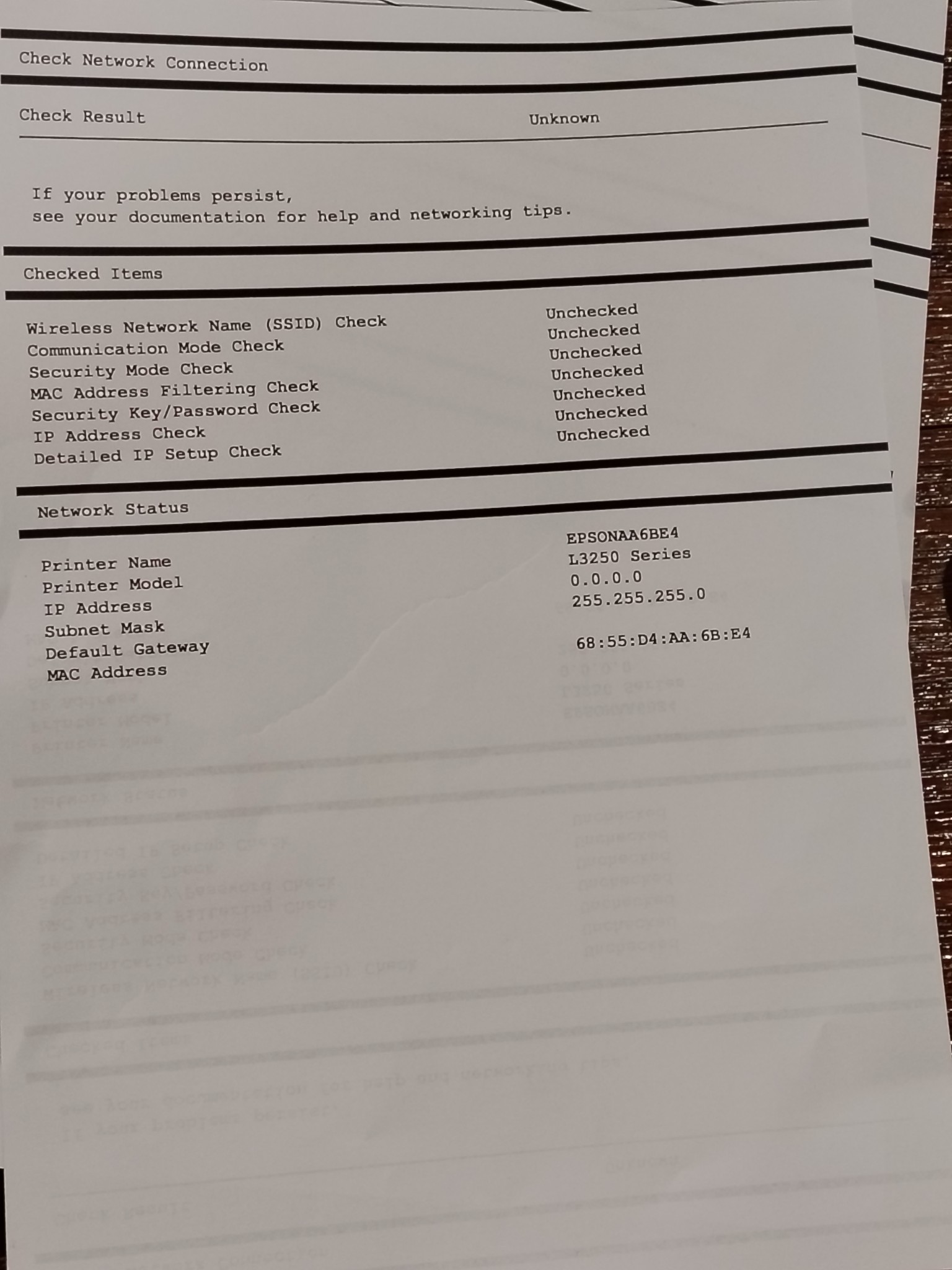 Epson L3250 ขอรหัสเเล้วขึ้น unchecked