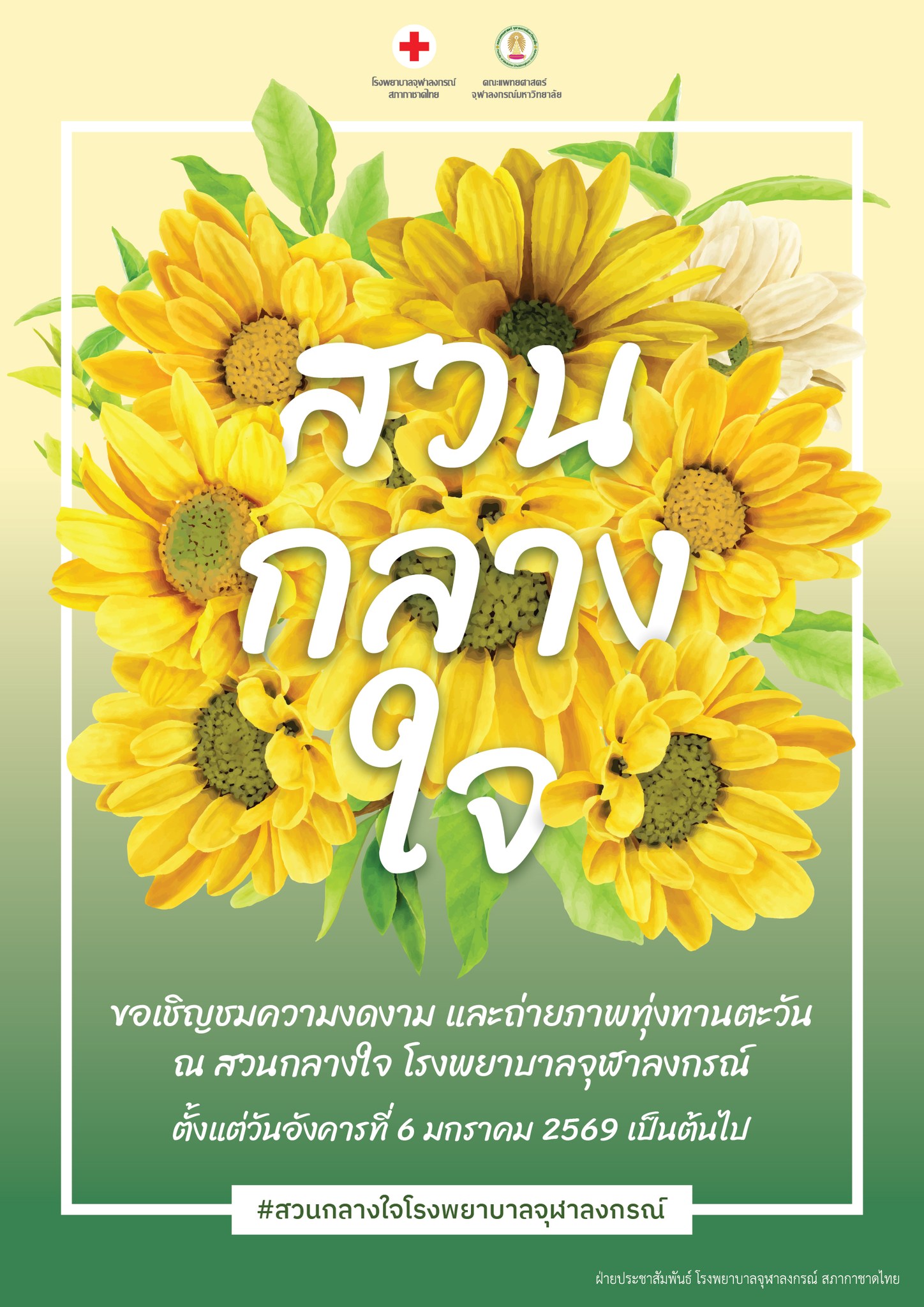 📸 ร่วมชมความงดงาม และถ่ายภาพทุ่งทานตะวัน ณ สวนกลางใจ โรงพยาบาลจุฬาลงกรณ์ ตั้งแต่วันอังคารที่ 6 มกราคม 2569 เป็นต้นไป