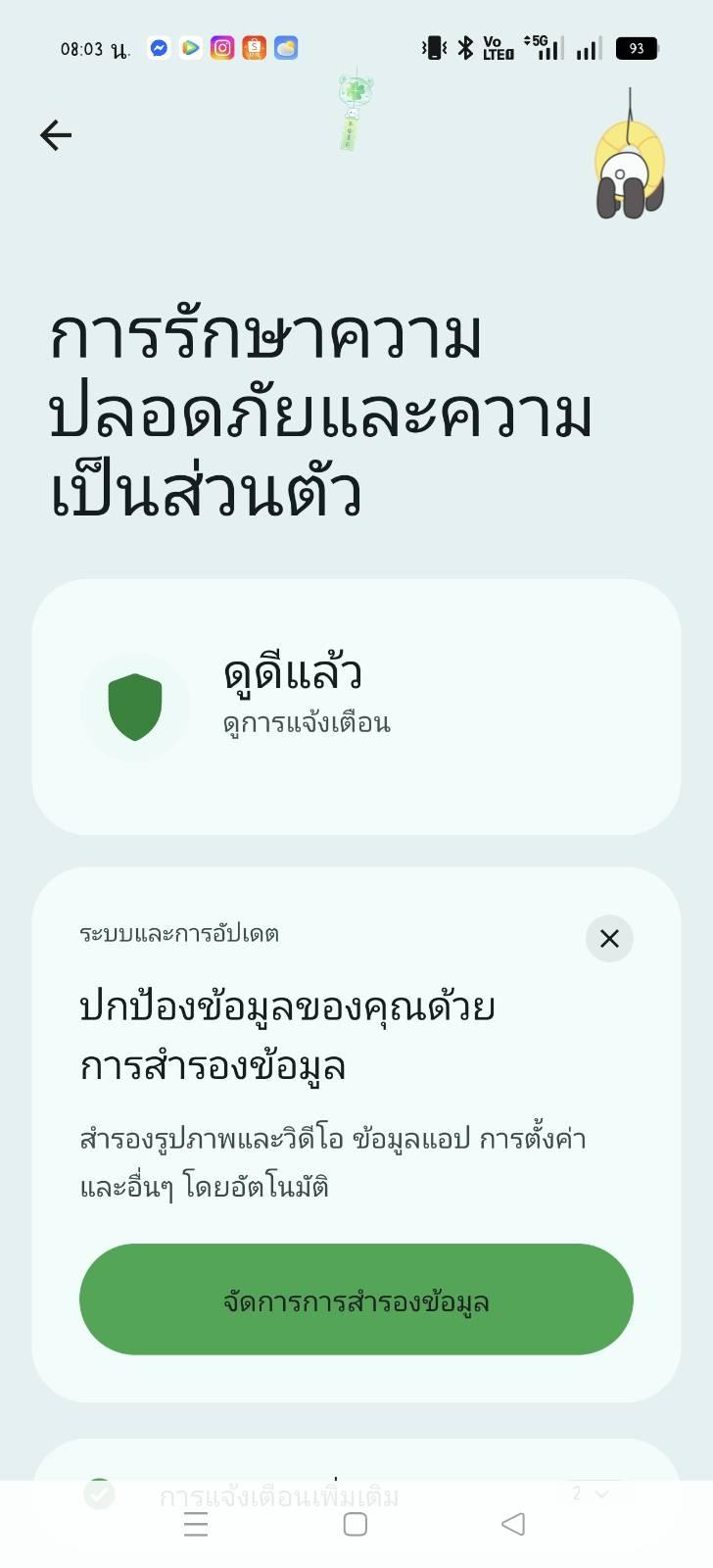 เปิดใช้งานการรักษษาความปรอดภัยและตั้งค่าส่วนตัวใน โทรศัพท์ oppo reno 14 5g ไม่ได้