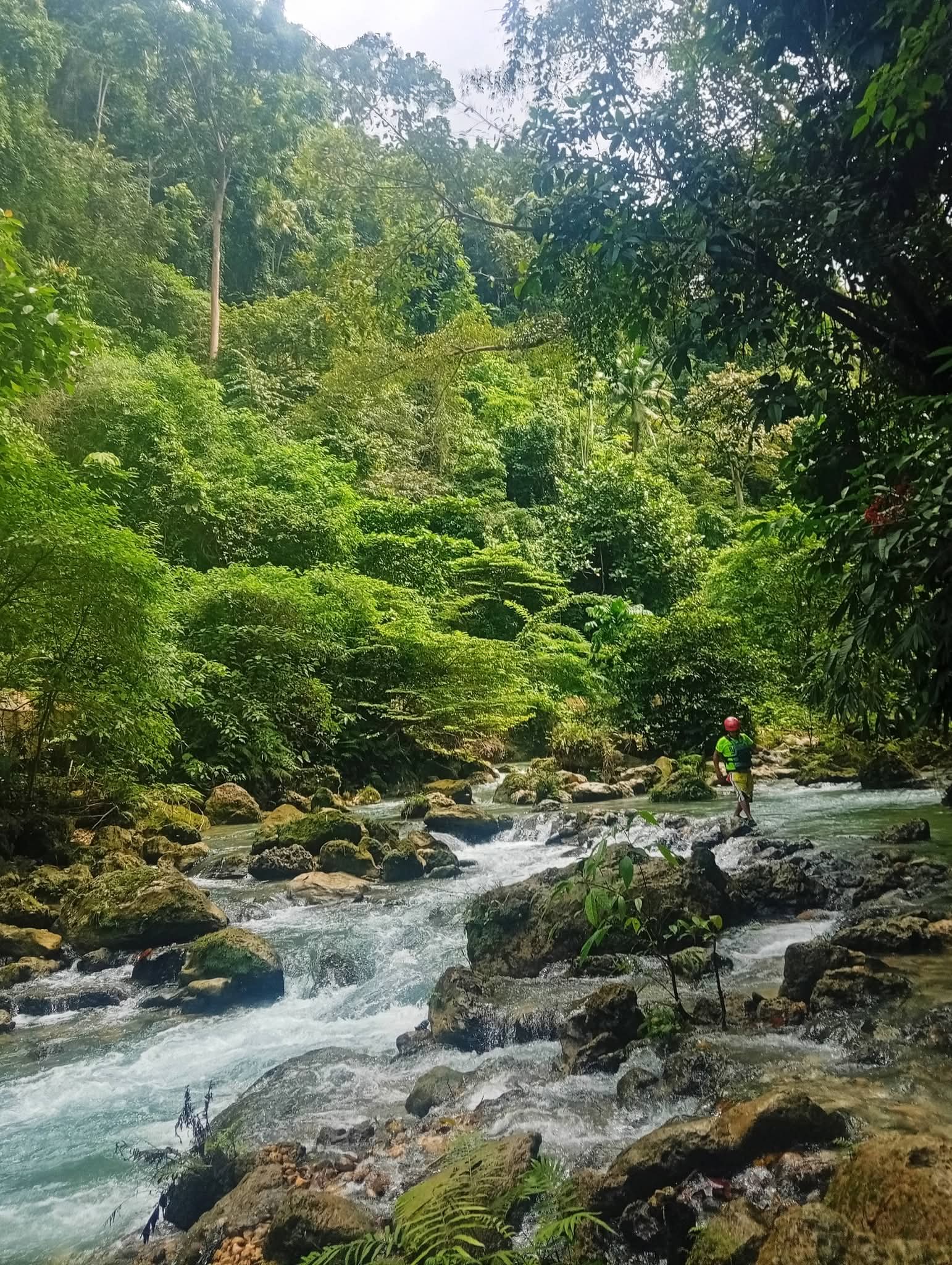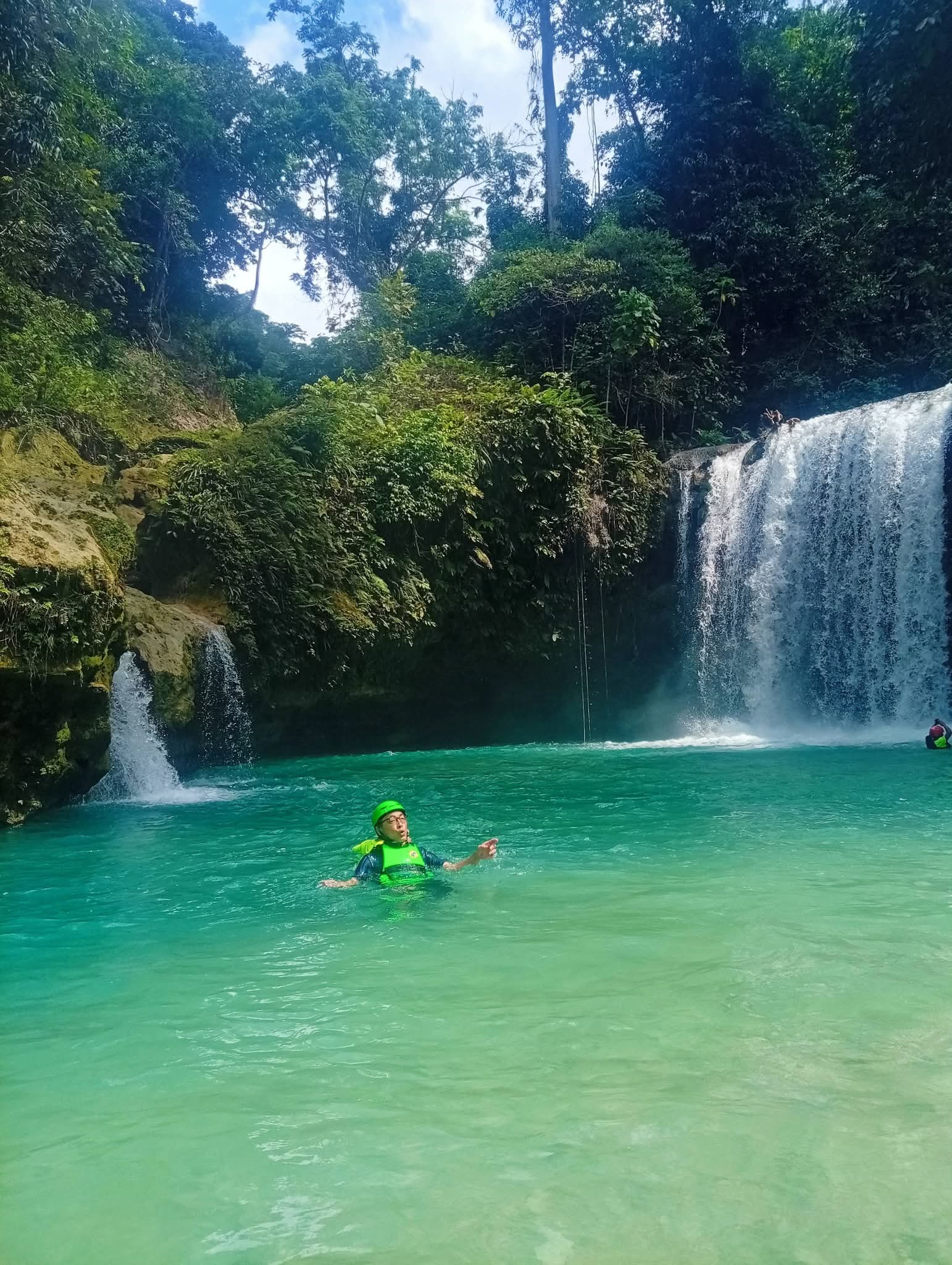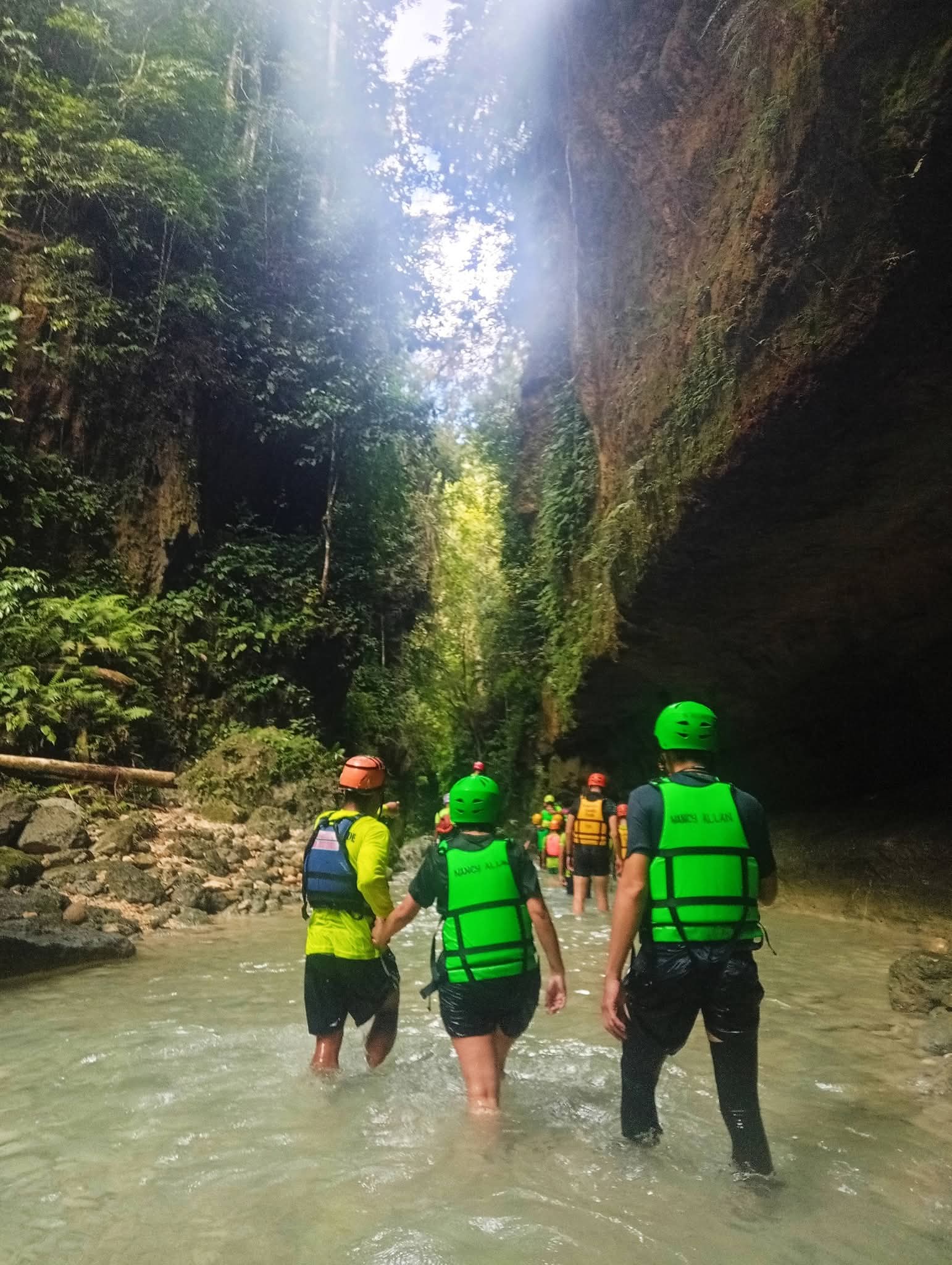 การเทรคน้ำตกKawasan จำเป็นต้องใส่หมวกกันน็อคและชูชีพเพื่อความปลอดภัย