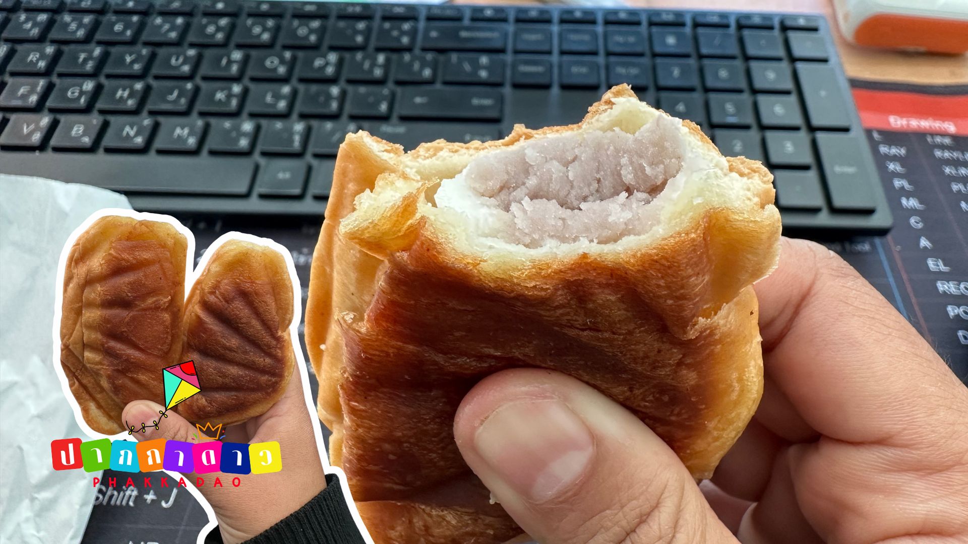 บาลานซ์รสชาติ ความเค็มปะแล่มๆ ของแป้งชิโอะปังกำลังดีตัดเลี่ยนไส้เผือกได้ลงตัวเป๊ะ บวกกับความกรอบนอกนุ่มในและความหนึบของโมจิ ทำให้การเคี้ยวสนุกมาก มีมิติสุดๆ ต้องลองแหละ
