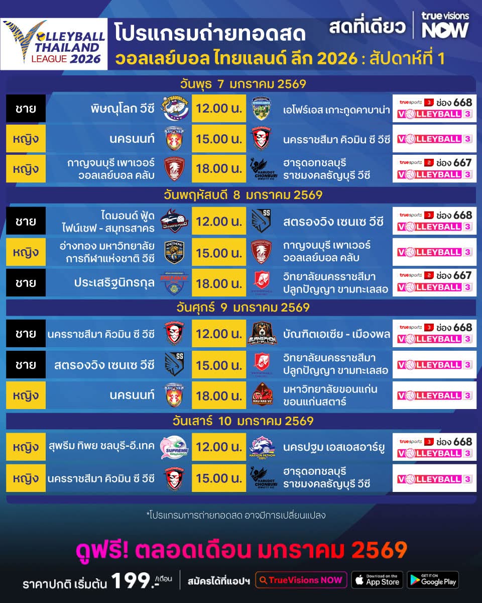 🎉🎉🏐🎉🎉 วันนี้ TVA Channel วอลเลย์บอลไทยแลนด์ลีก2026 เปิดสนามนัดแรกอย่างยิ่งใหญ่//ทรูให้ดูวอลเลย์บอลฟรี