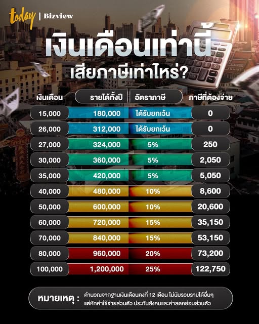 เงินเดือนเท่านี้ ต้อง เสียภาษีเท่าไหร่