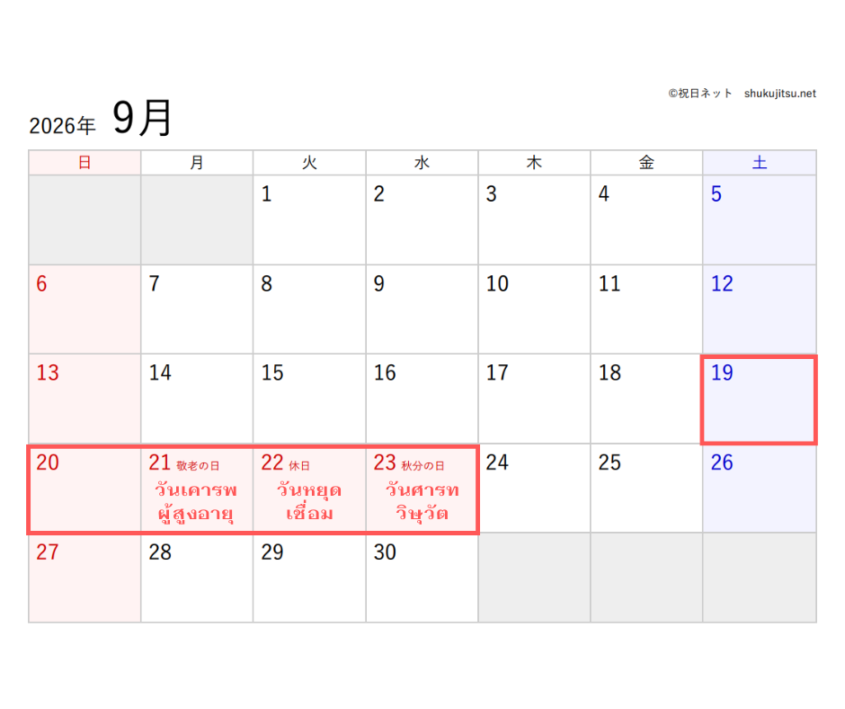 วันหยุดราชการเดือนกันยายนที่พูดถึง คือวันเคารพผู้สูงอายุ และวันศารทวิษุวัต โดยปกติแล้วทั้งสองวันนี้ไม่ได้กำหนดวันตายตัว จะชึ้นอยู่กับปฎิทินในปีนั้น ๆ