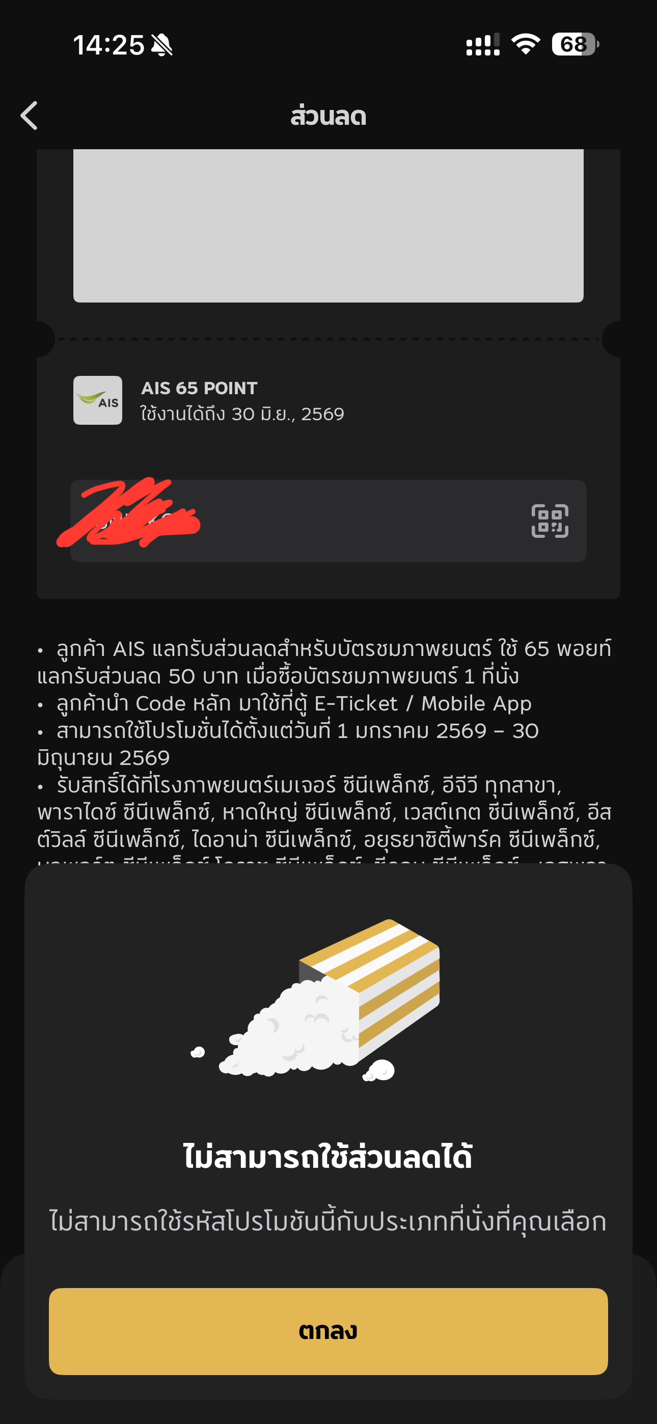 ใช้โค้ดลดตั๋วหนังไม่ได้