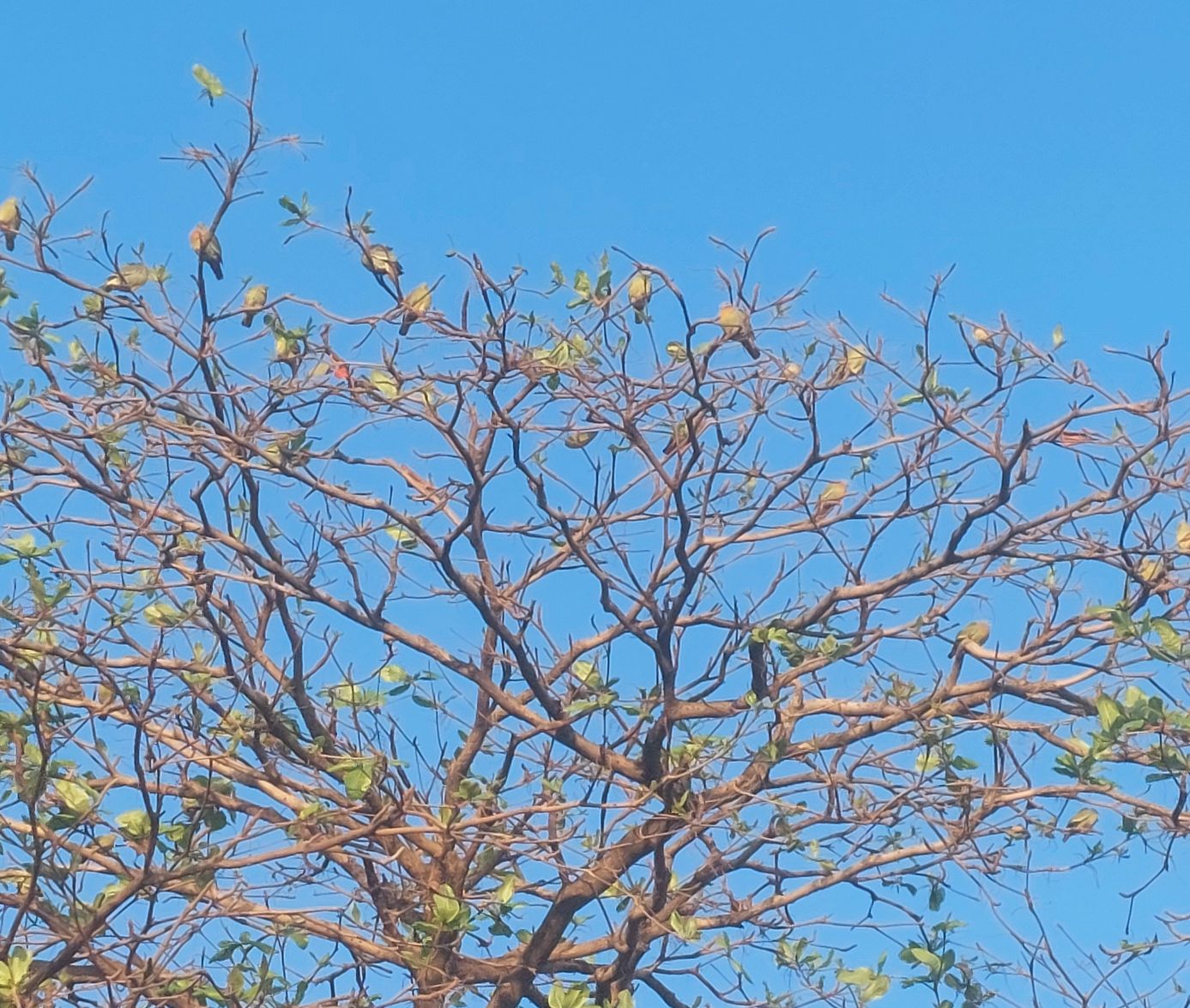 ภาพสุดท้าย นกตากแดดอุ่นช่วงเช้า ...ต้นนี้ทิ้งใบ กำลังแตกใบใหม่