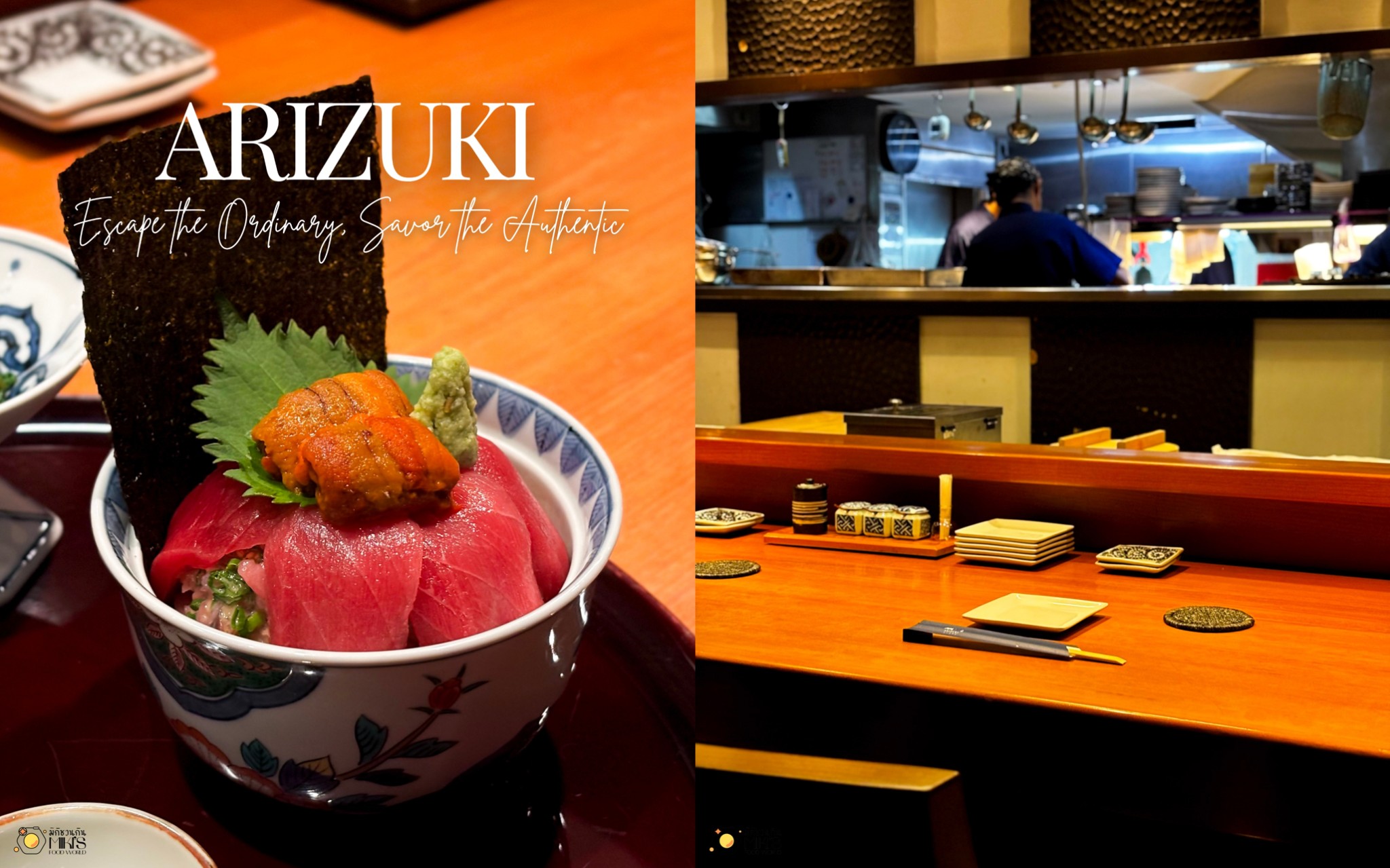 ลายแทงลับ Arizuki วัตถุดิบบินตรงจากญี่ปุ่นทุกสัปดาห์ การันตีความสดแบบตะโกน พร้อมเปิดวาร์ปคอร์สโอมากะเสะสุด Exclusive ที่เชฟจัดให้แบบจุกๆ มีเชฟญี่ปุ่นแท้ๆ มาทำให้ทานหน้าบาร์ หรือจะจัดเซตแบบ a la carte ก็มีให้เลือกเหมือนกัน