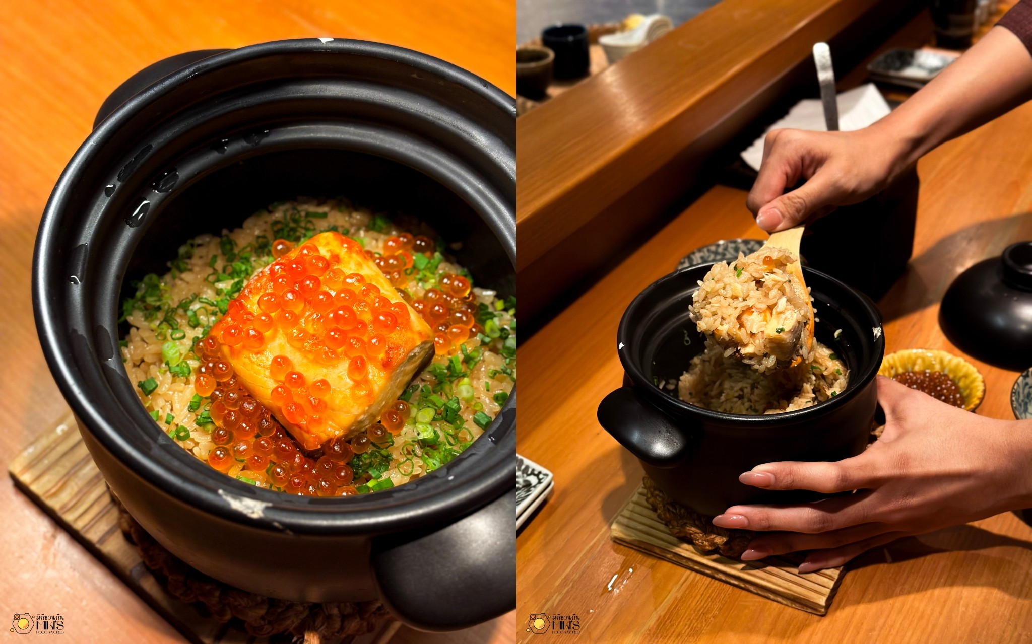 Salmon & Ikura Kamameshi (1153net) ข้าวอบแซลมอนและไข่ปลาที่หอมฟุ้งไปทั้งโต๊ะ ตัวข้าวนุ่มหนึบ แซลมอนอบมาสุกพอดี โรยด้วยไข่ปลาอิคุระแบบไม่กั๊ก ทุกคำคือความฟิน
