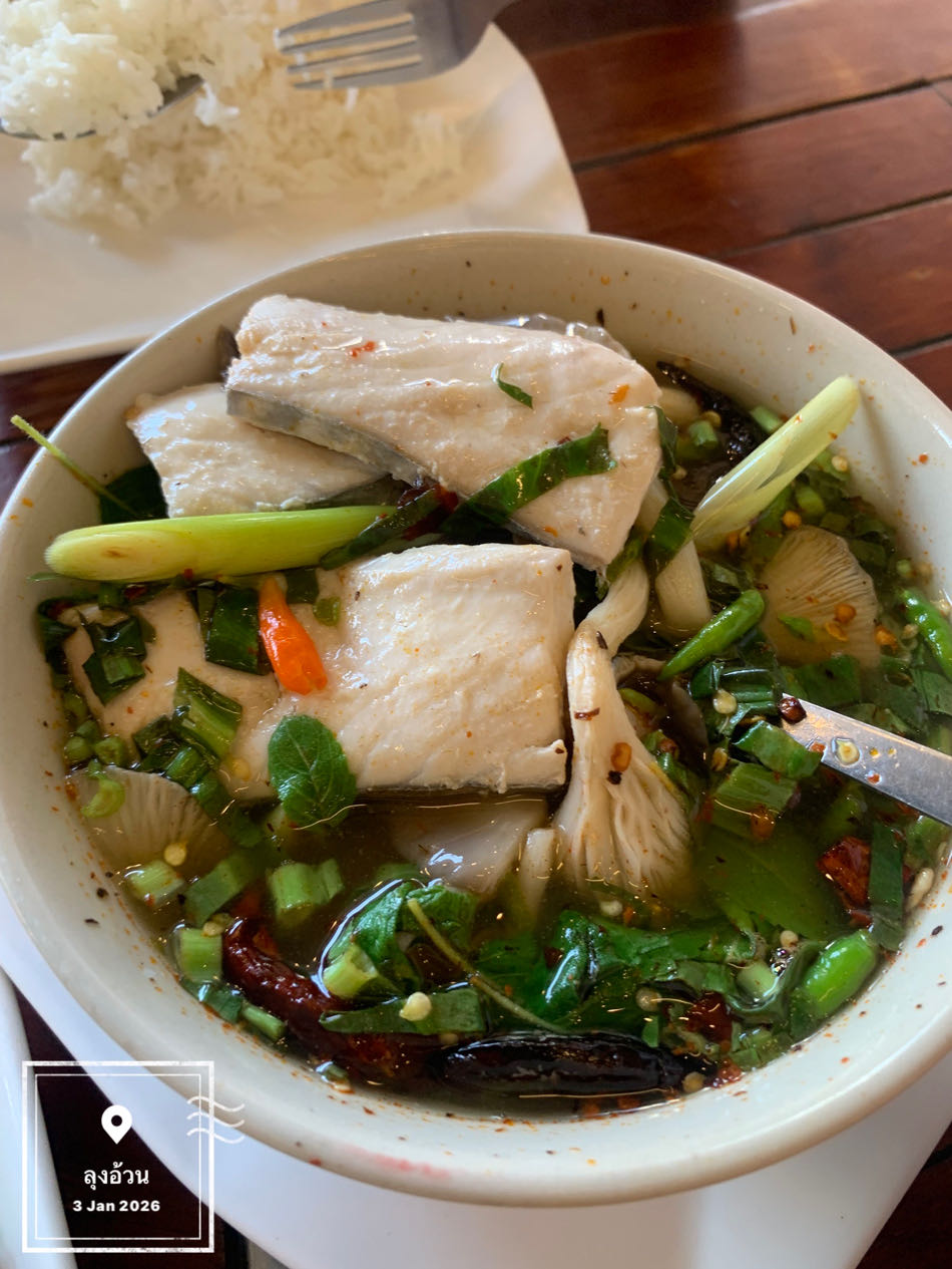 - อาหาร (ต้มยำเนื้อปลาอินทรีย์) : 130 บาท