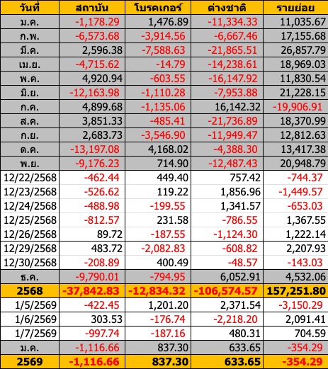 Sinthorn Summary 6/1/2569 : ต่างชาติขายสุทธิ -2,218.20 ลบ.