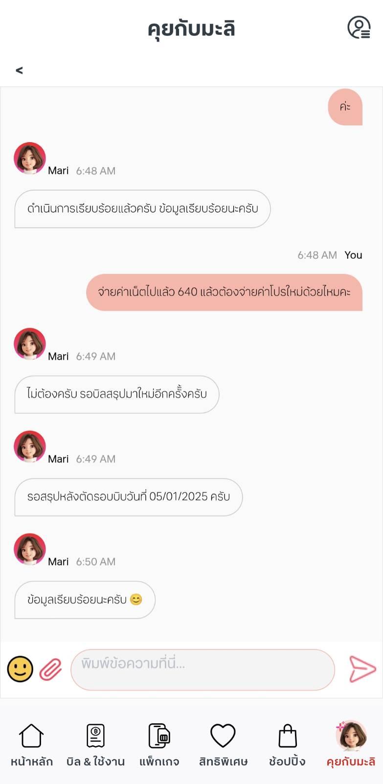 ก่อนหน้านี้เราใช้บริการทรู และได้ชำระค่าบริการเดือนธันวาคมไปแล้ว 640 บาท