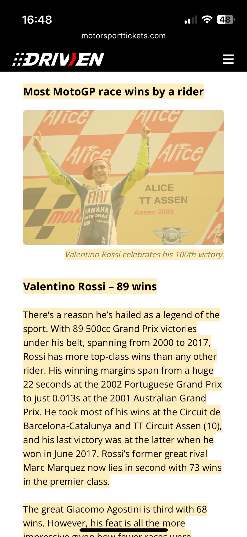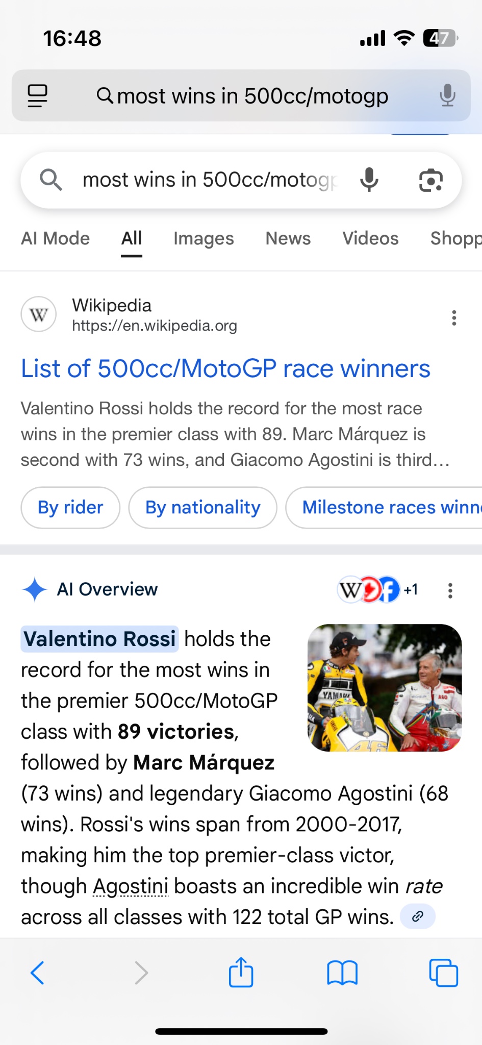ปล. Valentino Rossi แกคือ G.O.A.T. ของ MotoGP ตัวจริงเลยล่ะครับ