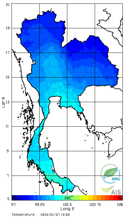 มวลอากาศเย็นเริ่มแผ่ลงมาปกคลุมประเทศไทยแล้ว เริ่มจากภาคอีสานและเหนือตะวันออกก่อน ส่วนภาคกลางในคืนนี้ก็เริ่มเย็นลงตาม