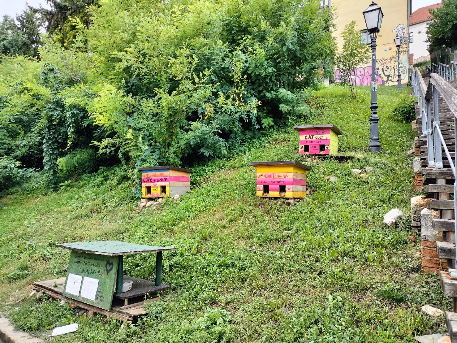 เดินเล่นเรื่อยเปื่อย มองเห็นที่พักแมวจรตั้งกระจายอยู่ทั่วไป