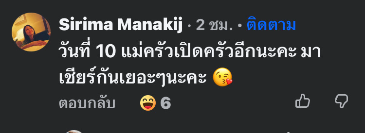 “วันที่ 10 แม่ครัวเปิดครัวอีกนะคะ มาเชียร์กันเยอะๆนะคะ 😘”เอ้ สิริมา