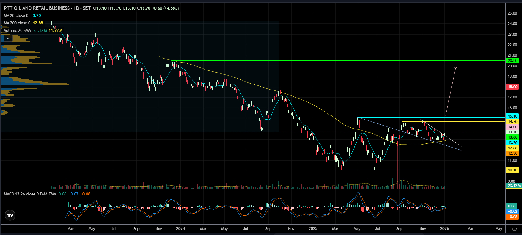 เป้าแรกคือ neck line ของ double botttom ที่ 15.10 ควรจะต้องเบรค, หลังจากนั้นเป้า 18 20 ตามลำดับ