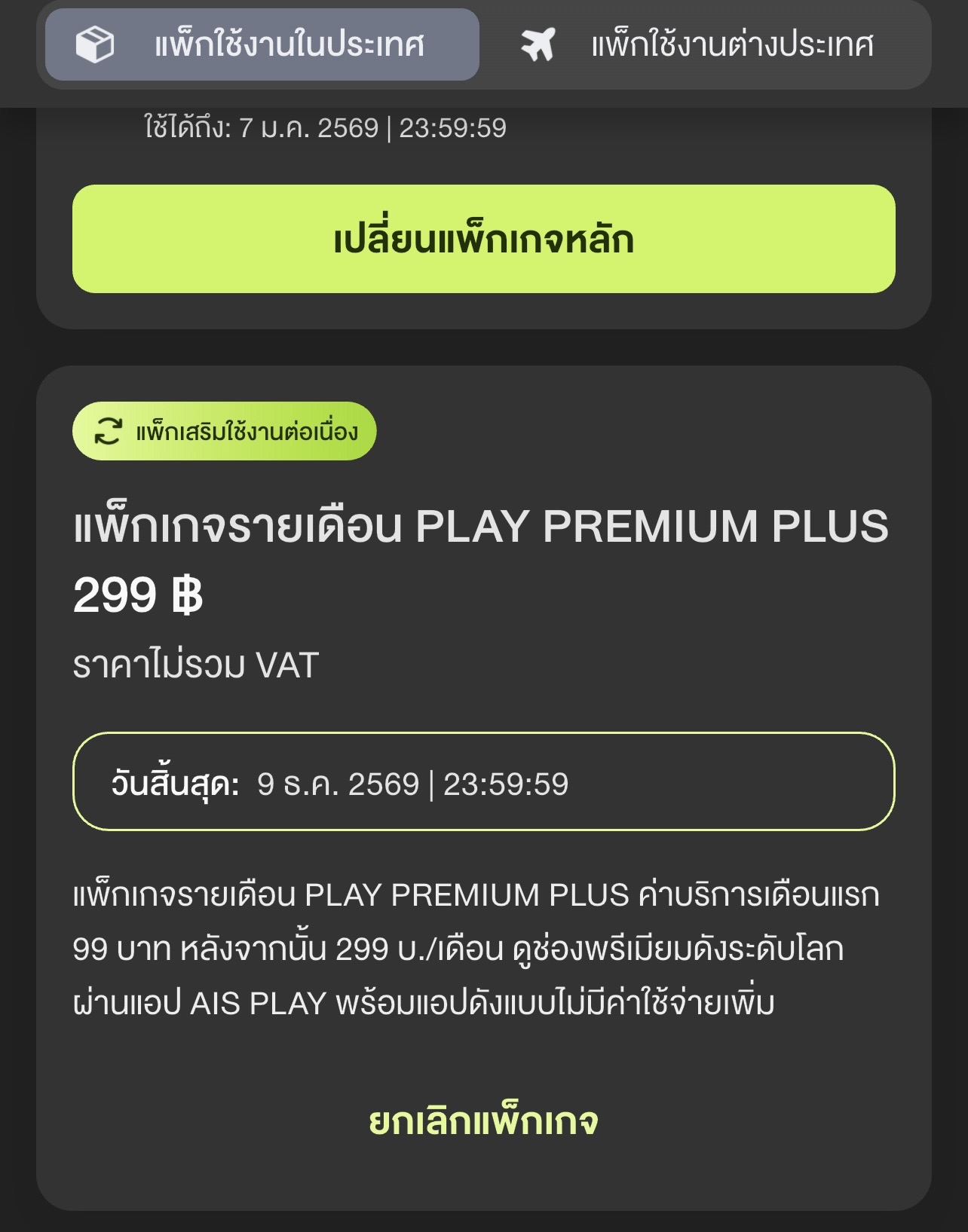 ต้องการยกเลิก แพ็กเกจ AIS Play Premium Plus 299 ทำยังไงครับ