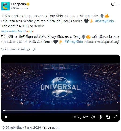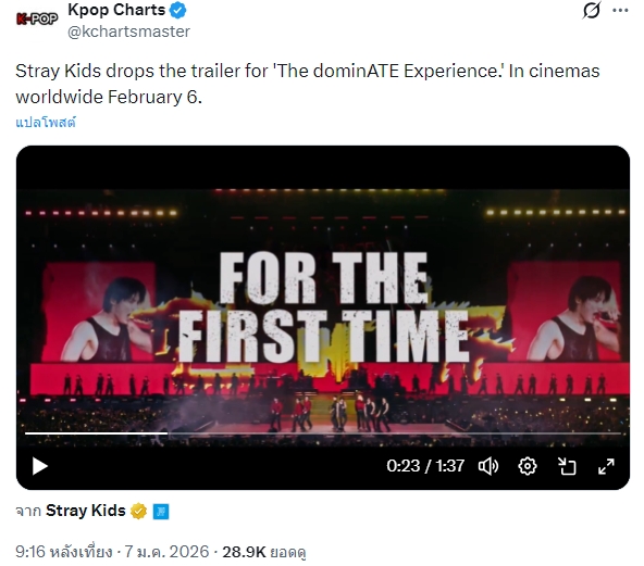 🔥 Stray Kids ได้ปล่อยตัวอย่างภาพยนตร์ 'The dominATE Experience' โดย Universal เข้าฉายโรงภาพยนตร์ทั่วโลก 6 ก.พ.นี้!