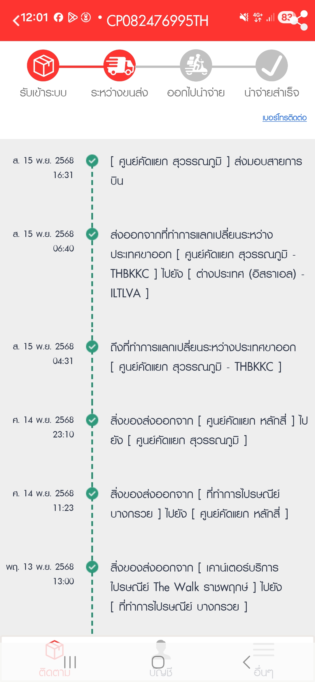ผมรอรับที่ปลายทางต่างประเทศพัสดุค้างอยู่สายการบินจะครบ2เดือนแล้วยังไม่ส่งมา ติดต่อcallcenterไปรษณีย์กลับที่ไทยก็ไม่ได้